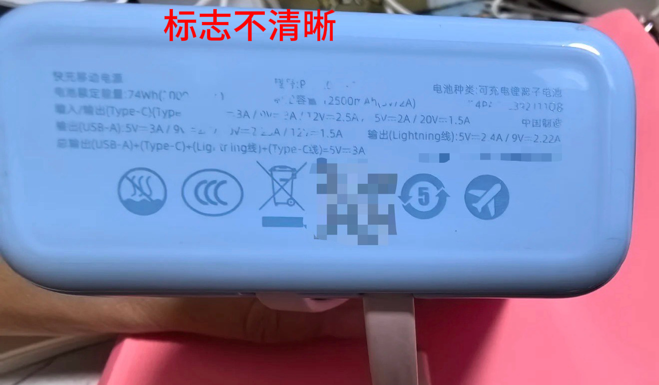 ▷標識:旅客禁止攜帶沒有3C標識、3C標識不清晰的充電寶乘坐境內航班。