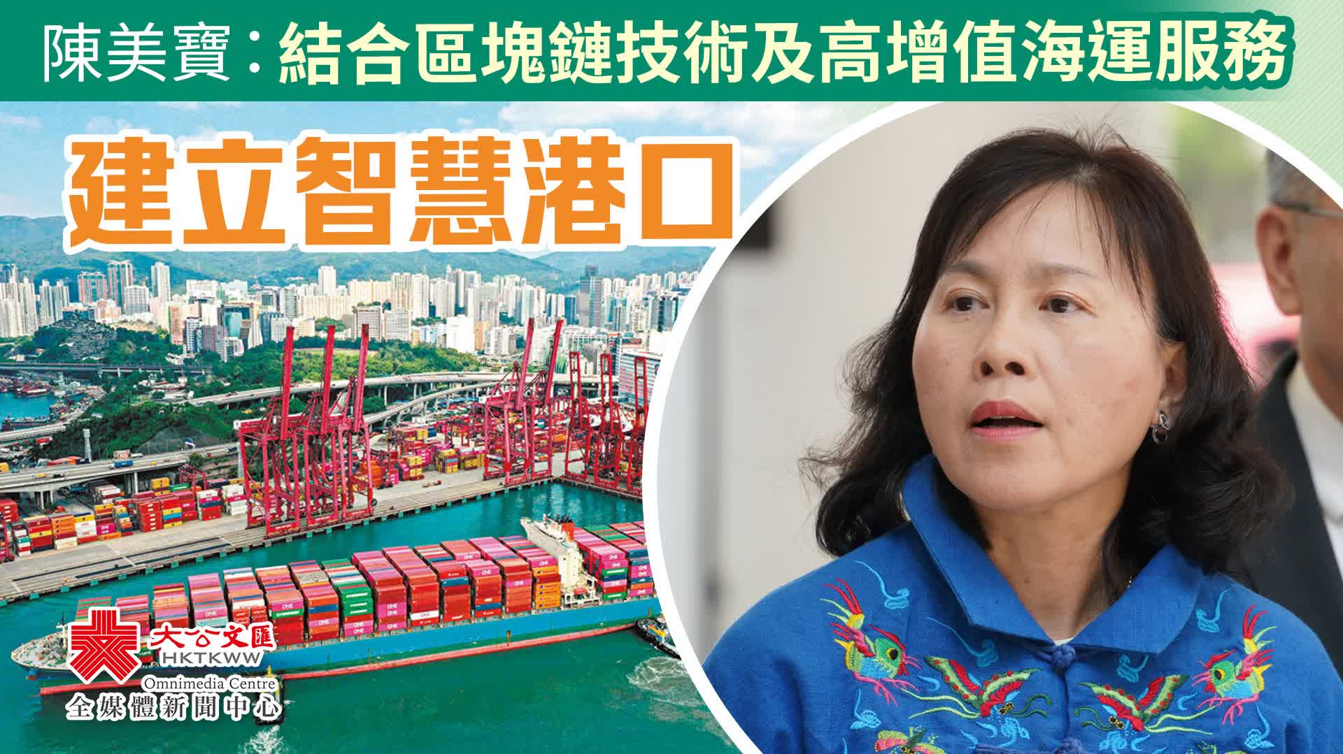 運輸及物流局局長陳美寶表示,政府正牽頭搭建平台,旨在為香港的貨物處理服務增加價值。她透露,局方計劃在下一階段利用該系統推出增值服務,並整合區塊鏈技術,將其他高價值海運服務納入其中,以推動智慧港口的建設。陳美寶在節目中指出,香港港口的集裝箱處理效率一直處於全球領先地位。她引用綜合實力指數說明,即除了吞吐量之外,再計及效率和質素,香港多年來全球排第4。