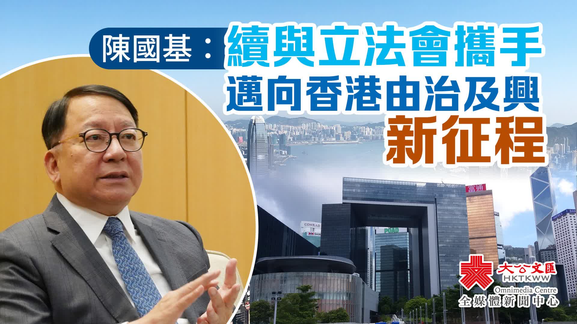陳國基表示,在國家的大力支持下,香港成功落實「愛國者治港」。無論是審議法案和撥款建議、或是為政策措施出謀獻策,現在的立法會議員都以理性、務實的方式議政,實事求是、分秒必爭。在香港邁向「由治及興」的新征程上,政府會繼續和立法會攜手合作,堅持互相尊重,持續良性互動,為市民謀幸福,為香港謀發展,這是最重要的目標。