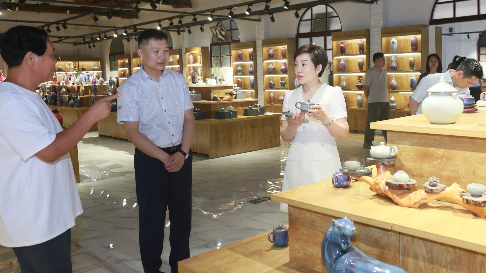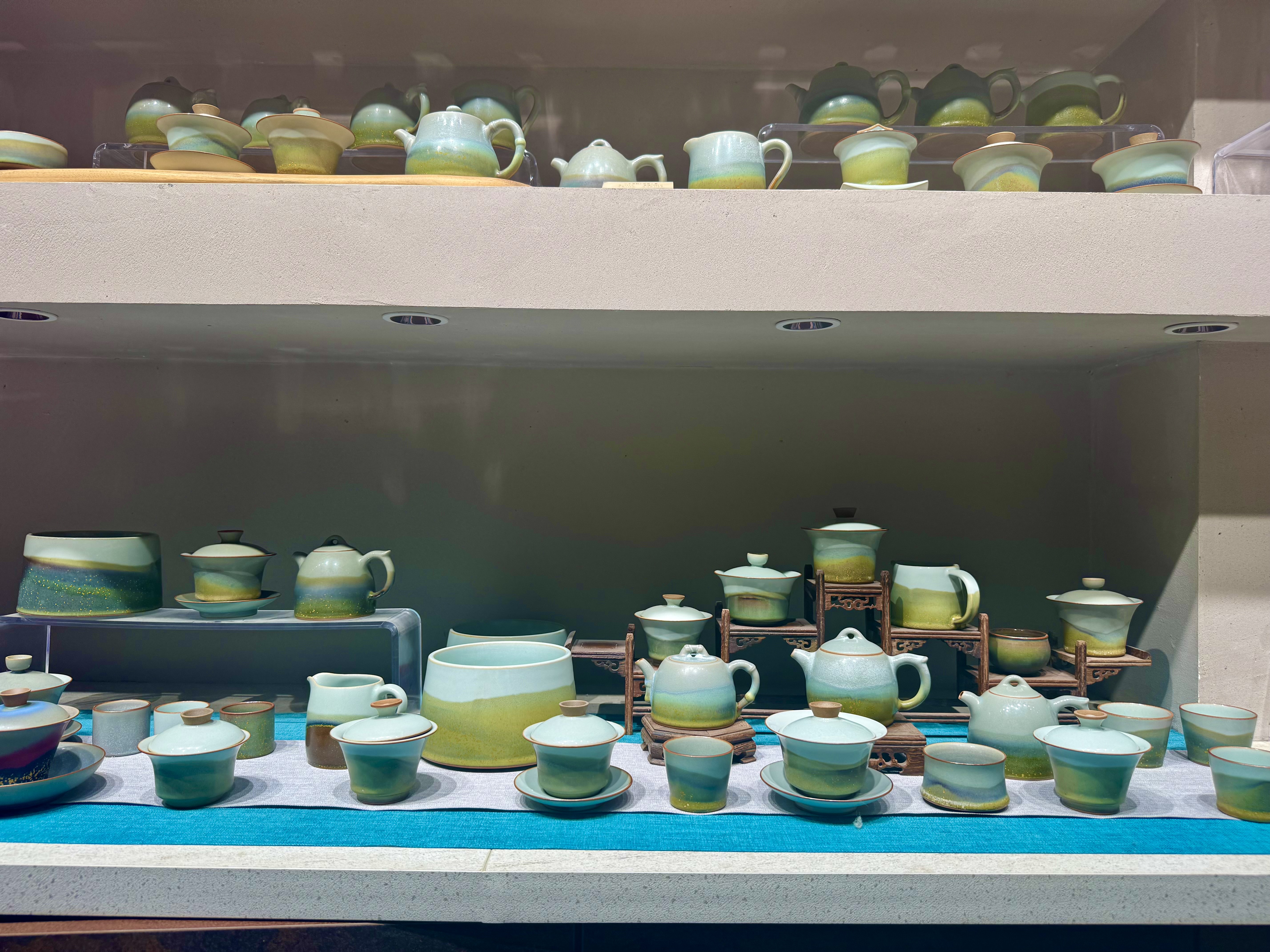 「鈞瓷壺蓋燒制一直存在易變形、尺寸難精準的難題,這曾是制約鈞瓷茶器發展的一大瓶頸。」孔相卿介紹道,為解決這一困境,孔相卿等多位匠人另闢蹊徑,創新採用「二次規整法」。「具體來說,就是先將壺蓋燒得大一點,出窯後運用玉雕工藝打磨規整。」這種創新方法跳出了傳統泥料和燒制環節的局限,從全新角度解決問題,一舉攻克技術難關。孔相卿認為,這不僅是技術上的突破,更體現了鈞瓷匠人不斷探索、勇於創新的精神。這種創新思維,為鈞瓷茶器的發展注入了新的活力,也讓鈞瓷這一古老的藝術形式在現代生活中煥發出新的光彩 。如今,滿大街的鈞瓷壺便是這一創新成果的直觀體現,該方法不僅解決了工藝難題,更催生出一條完整的鈞瓷壺產業鏈。