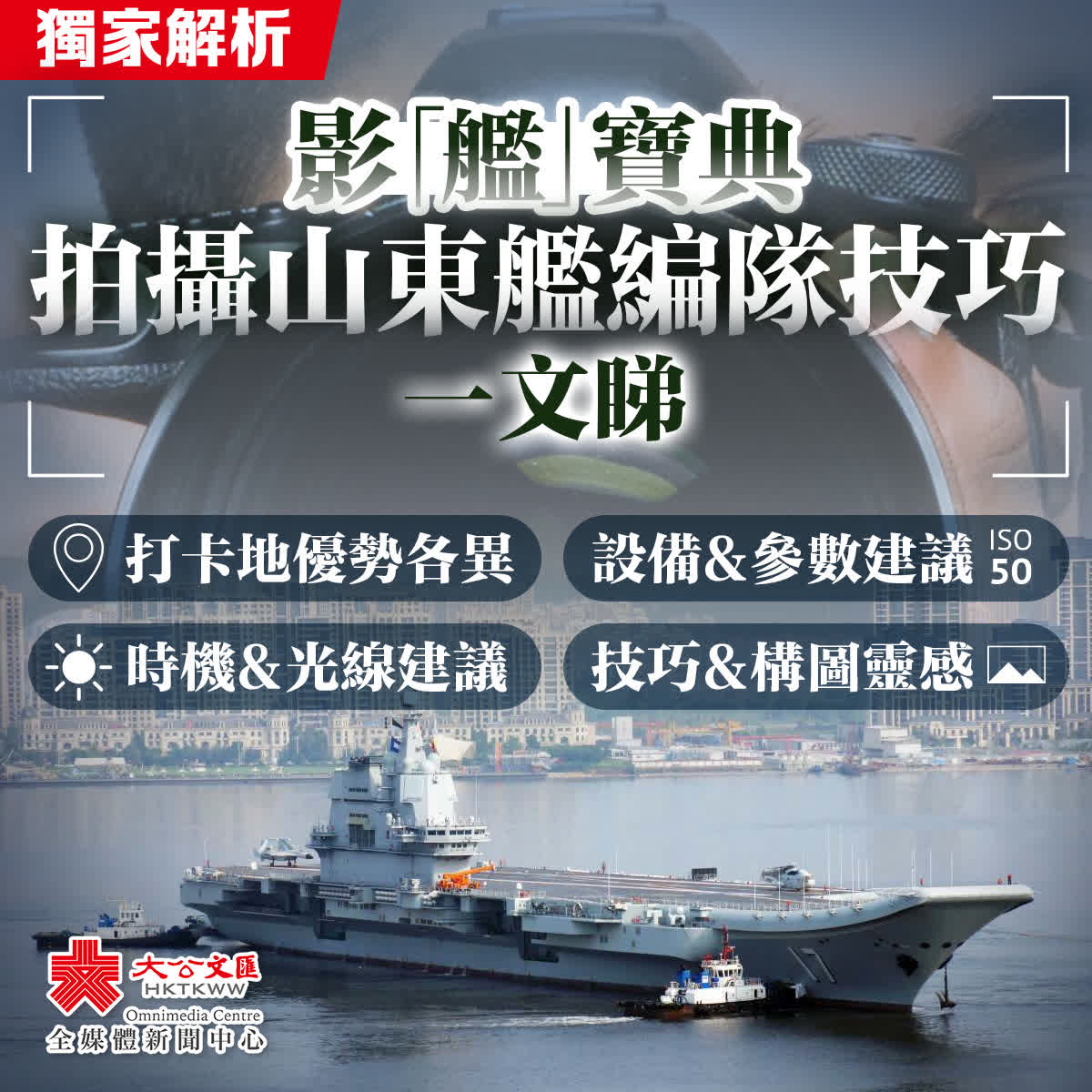 (大公文匯網 記者 宋偉)山東艦訪港未搶到票,又想影下「大國重器」的精彩畫面?拍照設備怎麼選,相機參數如何調,何時光線最適宜,構圖上又有哪些靈感可供借鑒?看這篇一文搞定!