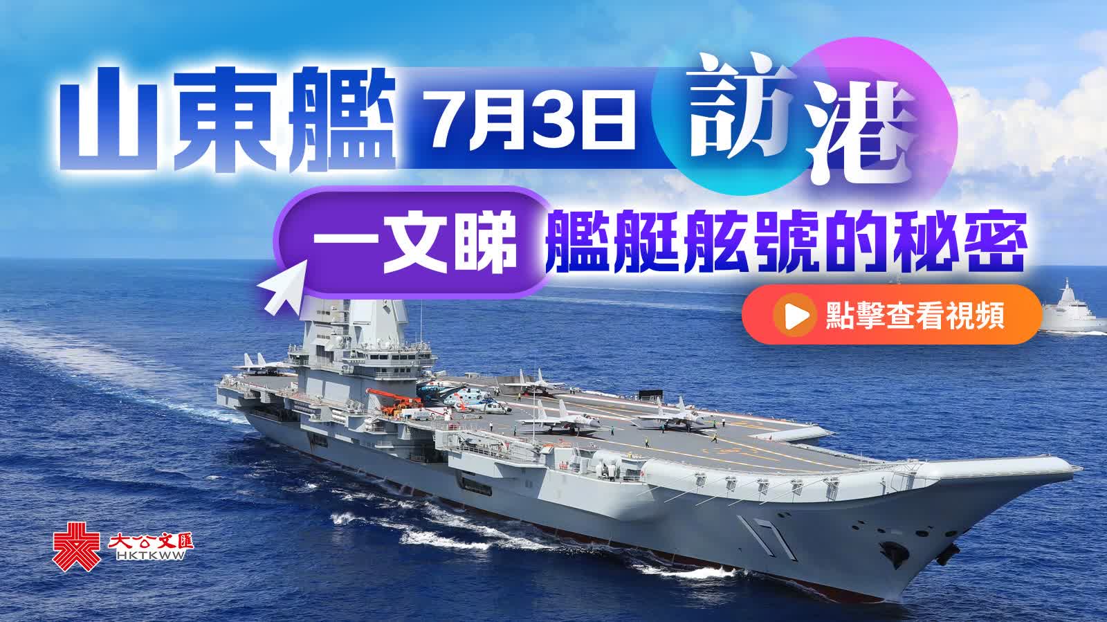 大公文匯網綜合報道,人民海軍國產航母山東艦同055型萬噸大驅延安艦、052D型「中華神盾」湛江艦及054A型主力護衛艦運城艦,於7月3日至7日訪問香港,期間編隊艦艇面向香港市民開放參觀。參觀名額一經開放瞬間秒空,山東艦更成「頂流」中的焦點,一票難求!那麼你知道航母、艦艇身上的神秘數字都有什麼意義?驅逐艦、護衛艦以什麼命名?
