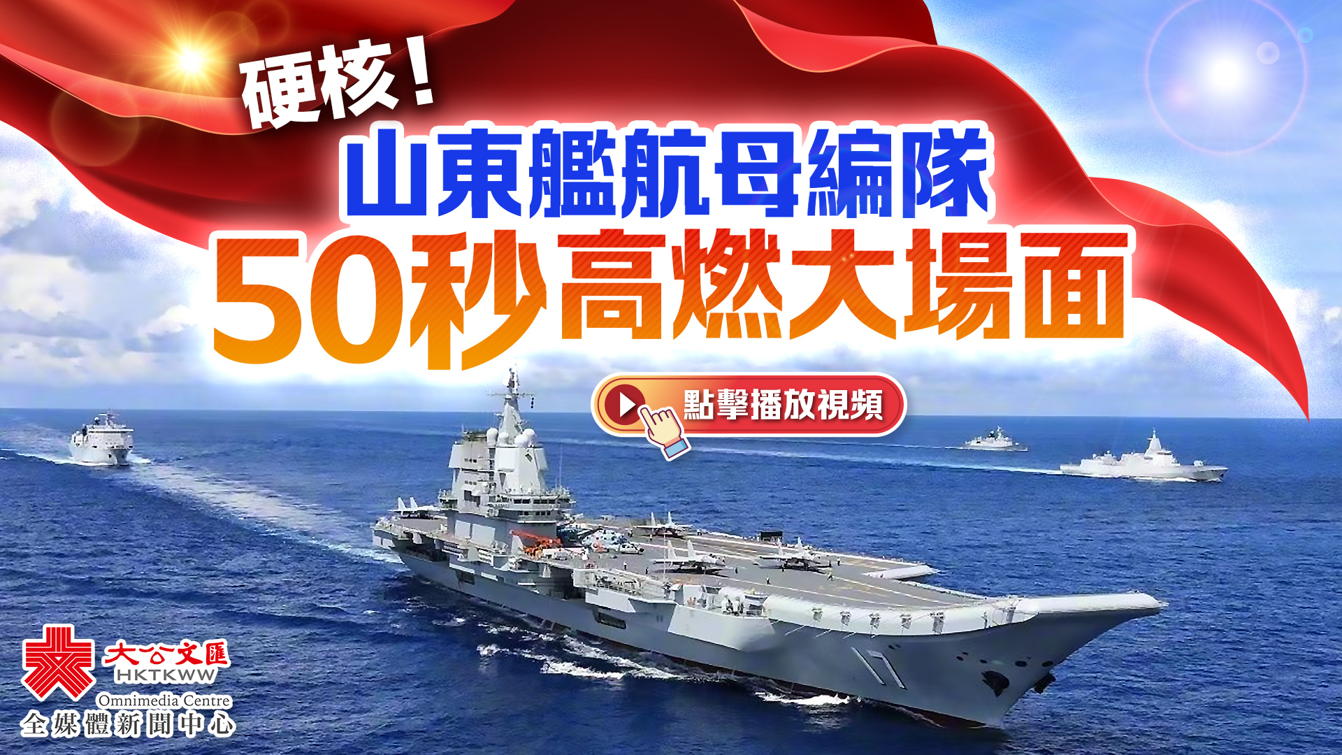 「中國軍號」微信視頻號今日(2日)發布長約50秒的短片,展示四艘訪港軍艦,包括山東艦、055型導彈驅逐艦延安艦、052D型導彈驅逐艦湛江艦及054A型導彈護衛艦運城艦在海上航行的影像, 以及戰機在山東艦起飛、導彈發射等場面。戳視頻期待。