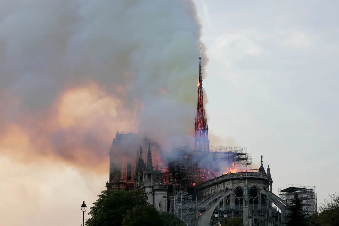 巴黎聖母院始建於12世紀,是法國最具代表性的古蹟之一。2019年4月15日,巴黎聖母院的屋頂和尖塔毀於火災,但主體建築得以保存。2020年,巴黎聖母院大火一周年之際,法國總統馬克龍承諾5年內完成巴黎聖母院修復工作。尖塔的修復工作包括加固鐘樓和觀景台等。