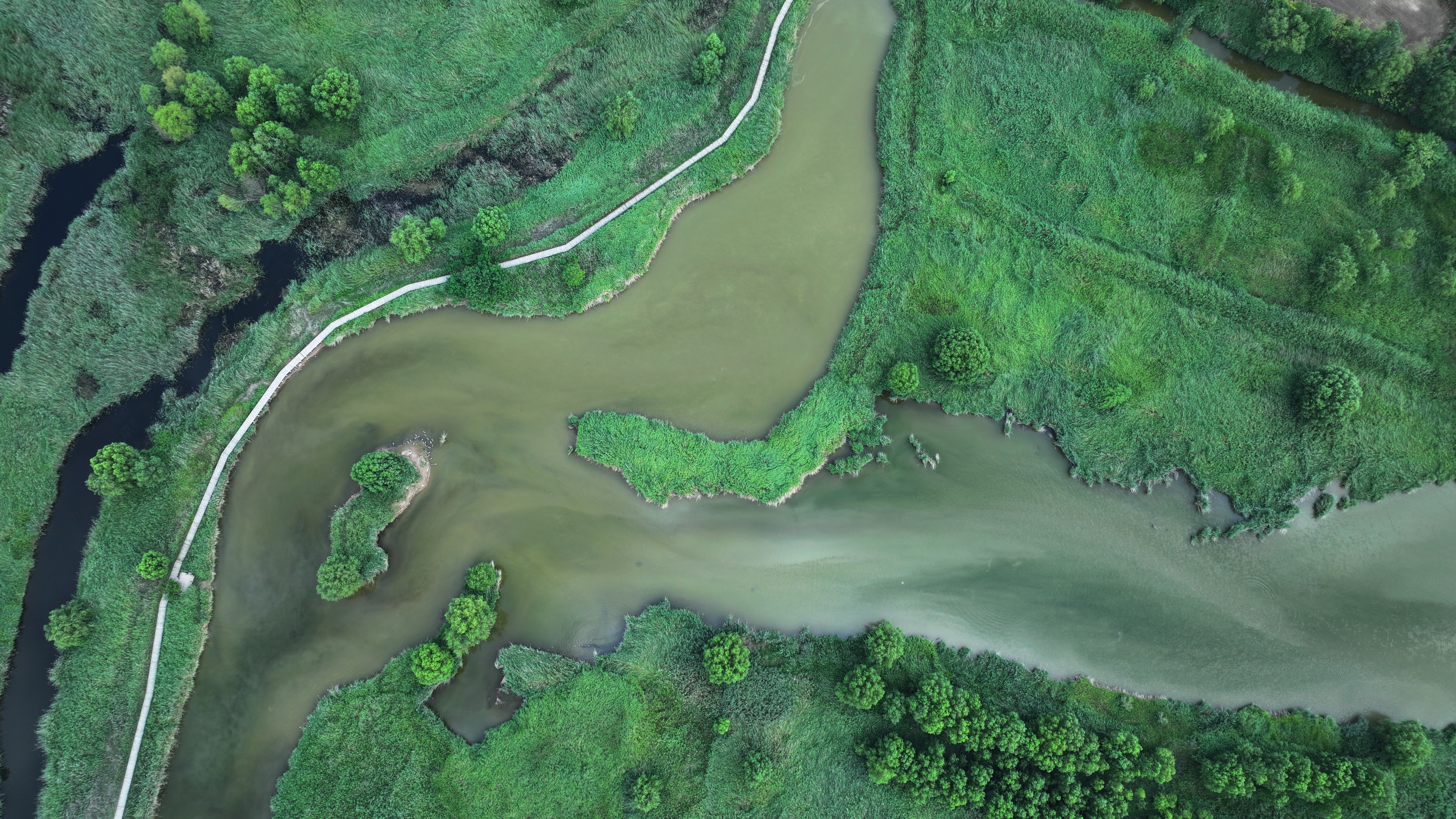 7月1日,河南省洛陽市孟津黃河濕地保護區台蔭恢復區,草木茂盛、風景如畫,彷彿為大地鋪上一層綠地毯,眾多珍稀鳥類如彩䴉、彩鷸、黑翅長腳鷸等在此棲息、覓食。