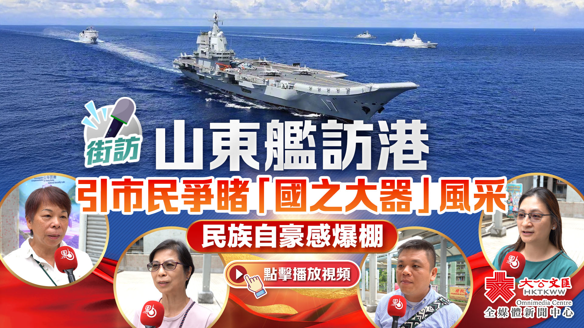 大公文匯全媒體報道,由航空母艦山東艦,導彈驅逐艦延安艦、湛江艦,導彈護衛艦運城艦組成的海軍艦艇編隊,將於7月3日至7日到訪香港,掀起一股搶票熱潮,市民爭先想親身體驗觀賞「國之重器」。大公文匯全媒體記者就此採訪市民心情,及他們對山東艦的期待。