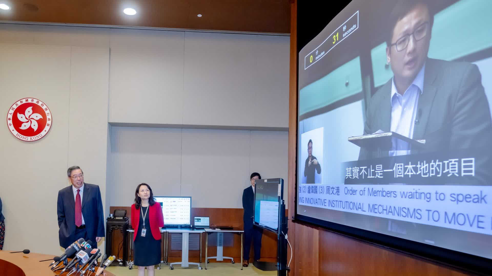 梁君彥表示,訓練成果大家很快就「看得見」,計劃本月內在立法會網頁、手機應用程式、YouTube頻道,以及立法會綜合大樓內的電視系統看到。