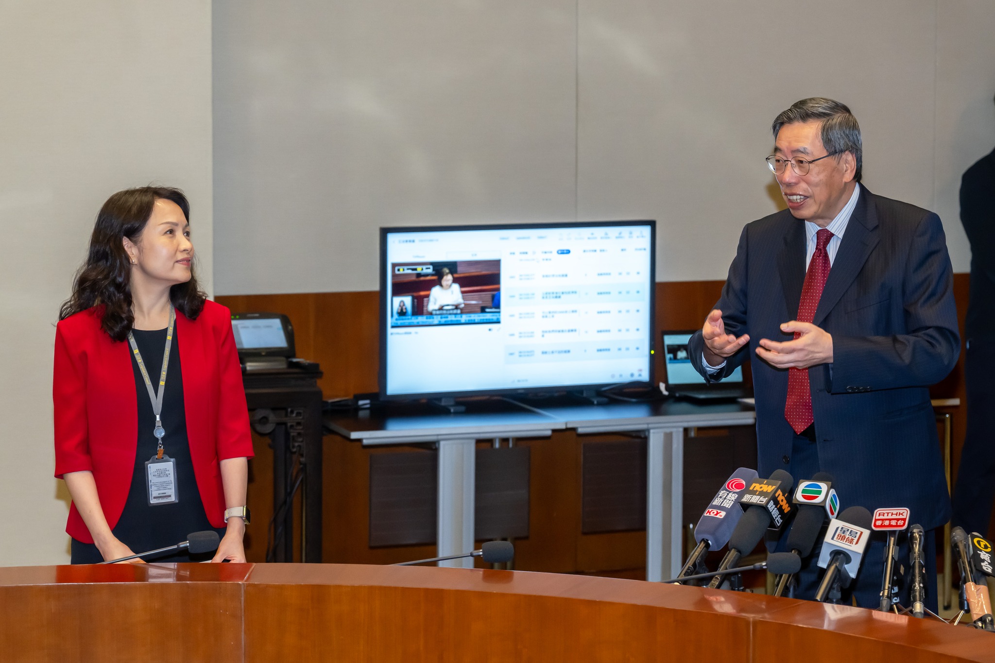 梁君彥說,立法會秘書處同事和科大訊飛的團隊如火如荼為推出實時字幕做好準備,包括在各個會議進行期間做實時測試,今明兩日的立法會會議期間亦進行演練和現場演示,讓議員、政府官員和傳媒先睹為快,很高興財經事務及庫務局局長許正宇和審計署人員到場觀看,亦感謝秘書處同事詳盡解說。