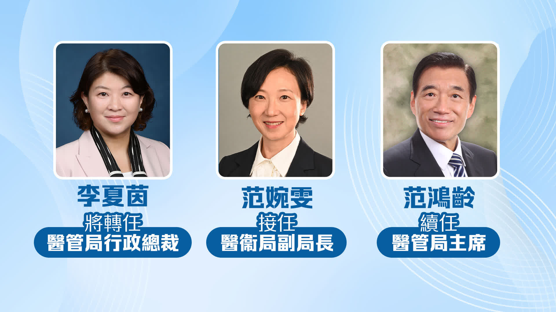 由醫管局大會委任的遴選委員會,早前經過全球招聘程序及審慎考慮後,推薦李夏茵醫生為醫管局行政總裁。有關任命已獲醫管局大會通過,並得到香港特別行政區行政長官批准。范鴻齡指出,醫管局大會對李夏茵醫生在臨床及管理范疇上的豐富經驗充滿信心,相信她的領導能力和管治才能,會繼續帶領醫管局更上一層樓。李夏茵醫生對醫管局未來發展具有清晰的願景及抱負,將會得到醫管局全體員工的支持,帶領醫管局面對未來的挑戰,繼續進行改革,提升公立醫院服務及邁向持續發展。