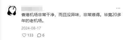 除了延誤少,香港機場的維護水準和便捷程度同樣獲得眾多網友點讚!