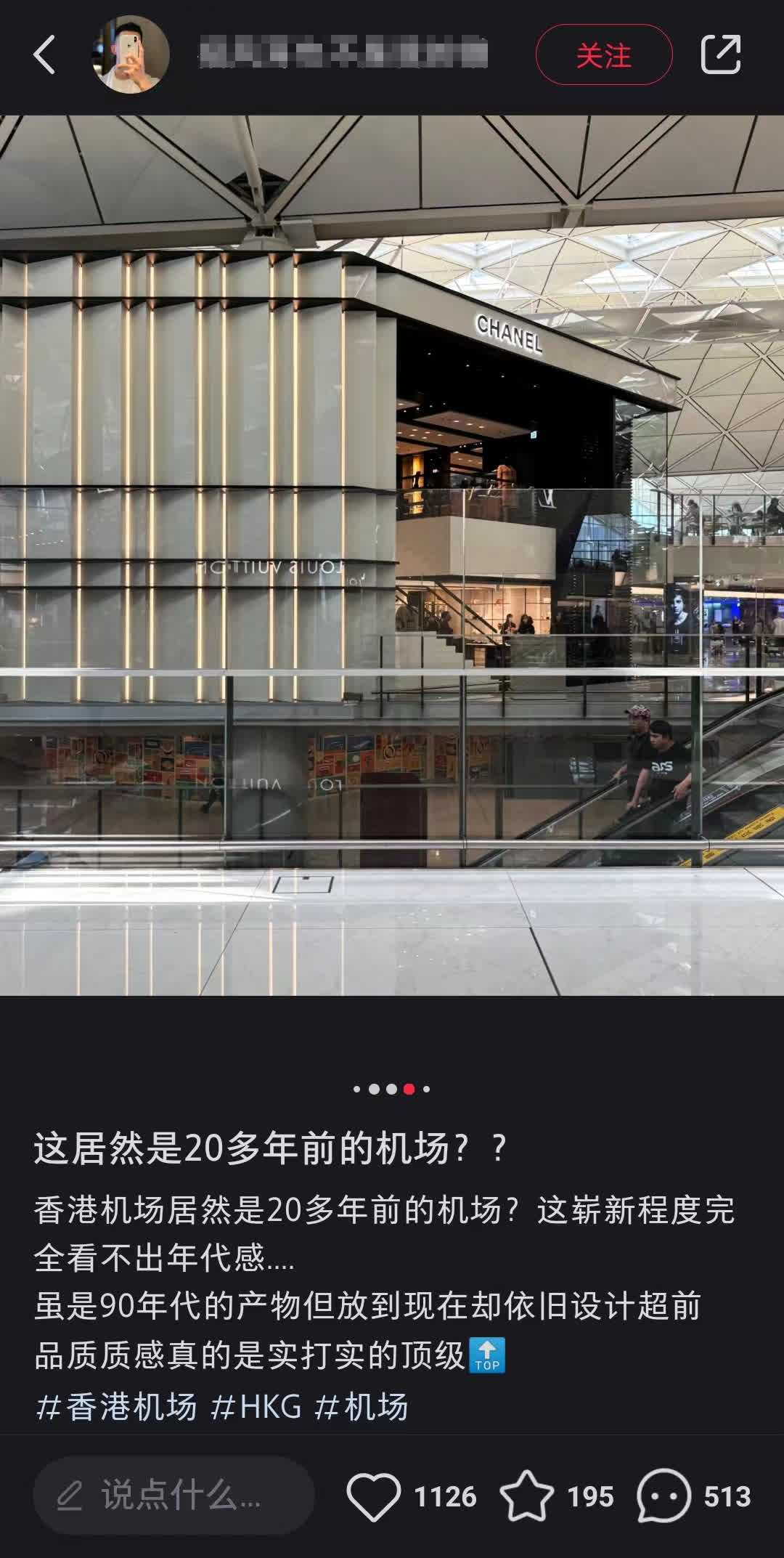 不少網友表示,香港機場保養得宜,將屆而立,細節依舊前衛驚人。(注:香港機場於1998年7月6日啟用)
