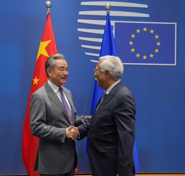 王毅表示,當今世界變亂交織,單邊主義、霸凌行徑嚴重衝擊國際秩序和國際規則。作為世界兩大力量、兩大經濟體,中歐堅持對話合作,陣營對立就難以形成;中歐選擇開放共贏,經濟全球化潮流就不會逆轉;中歐攜手踐行多邊主義,世界就亂不到哪兒去。國際形勢越是嚴峻複雜,中歐就越需要加強團結協調,堅定做動盪世界中的穩定性力量。要切實尊重彼此核心利益,增進理解互信,相互成就,照亮世界。