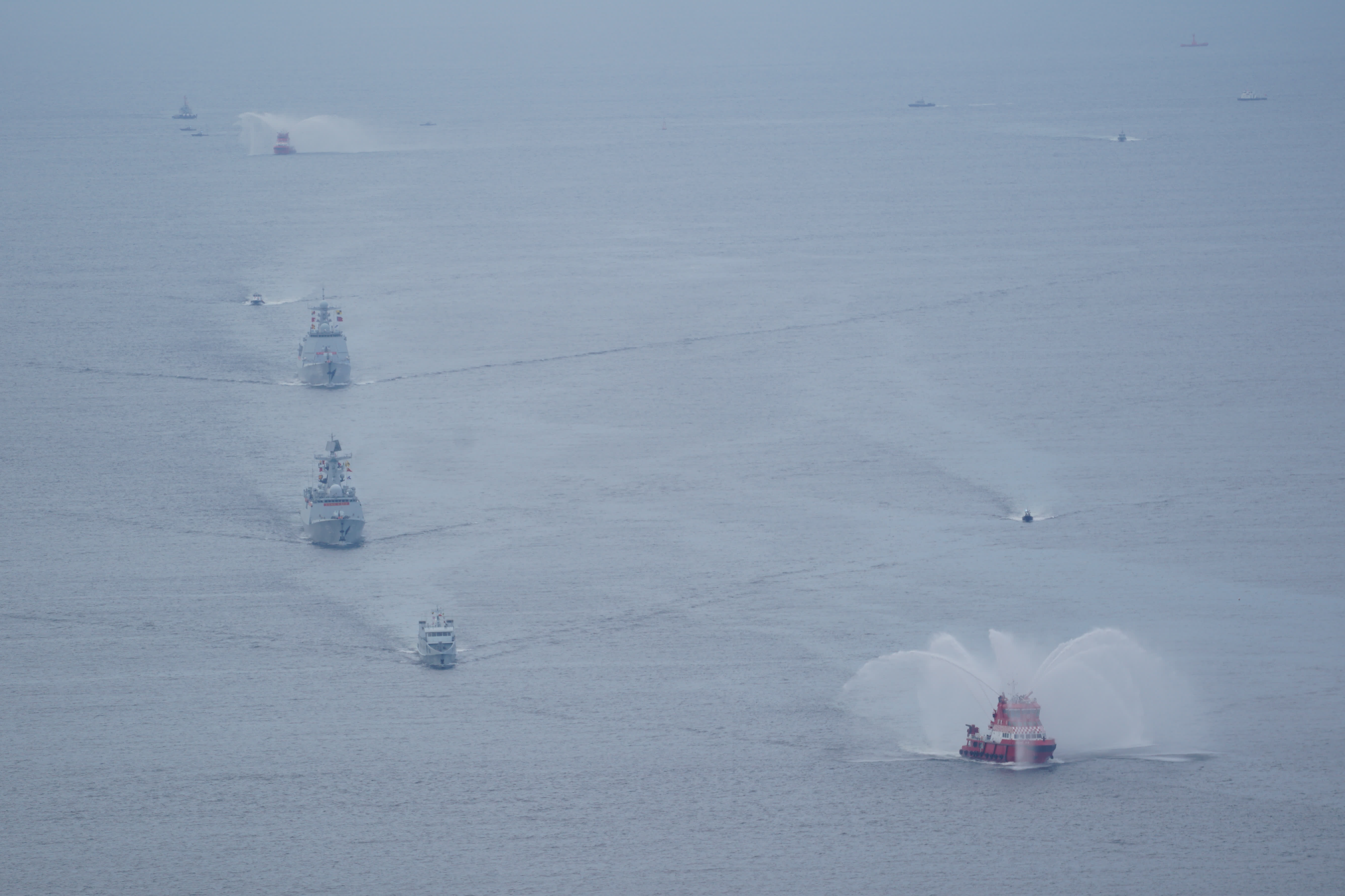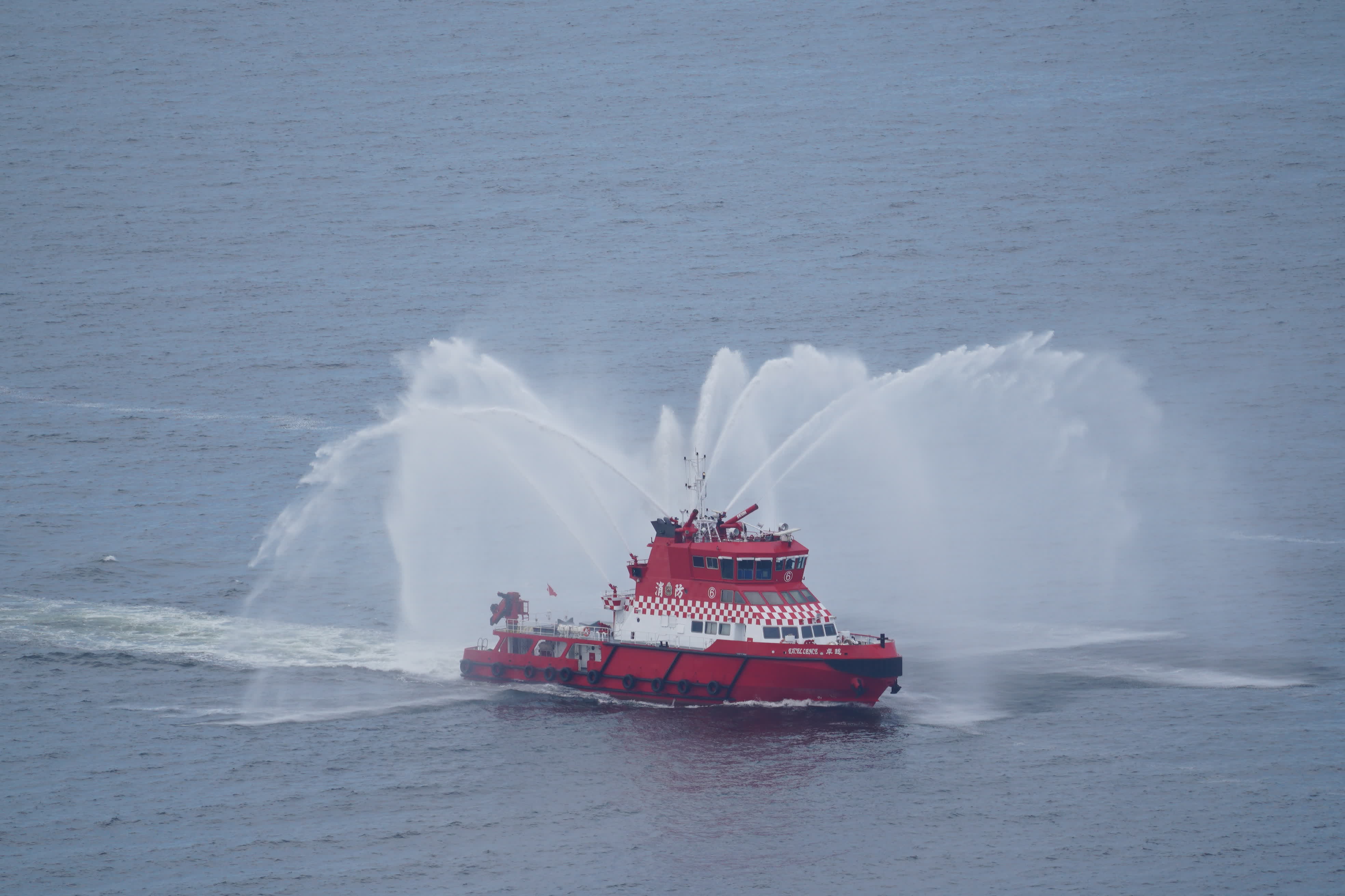 【07:35】消防輪以最高禮遇「水門禮」歡迎