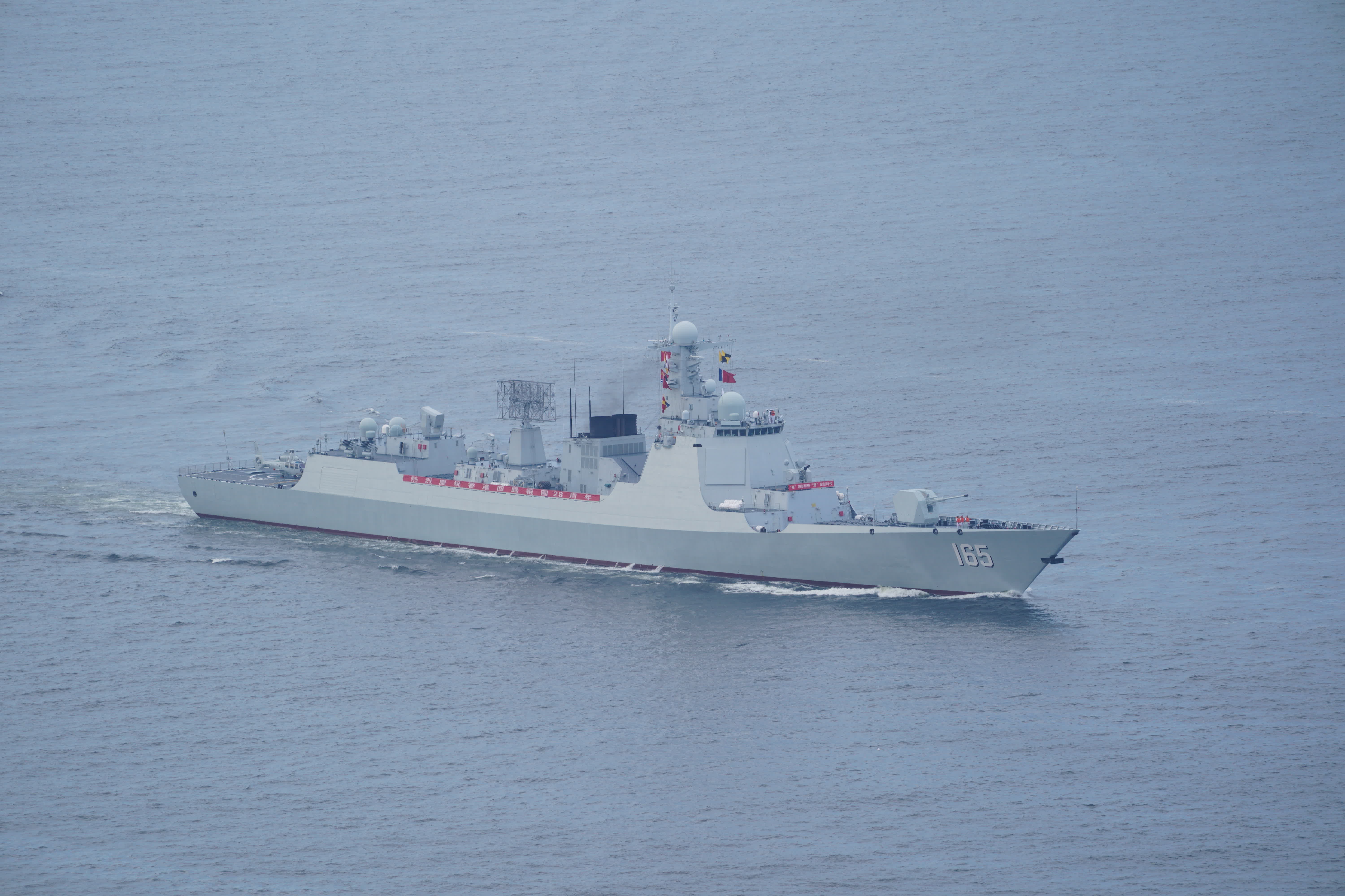 驅逐艦「湛江」號亦掛有繁體字橫幅,上面寫有「熱烈慶祝香港回歸祖國28周年」;「『艦』證新輝煌,『湛』放新時代」。
