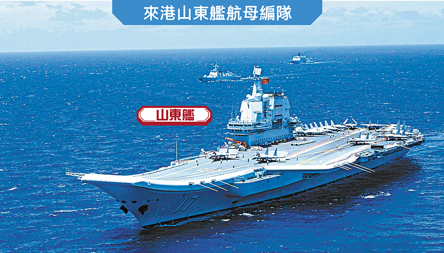 摩星嶺更適宜拍攝航母離港畫面,捕捉編隊穿越東博寮海峽的動態。