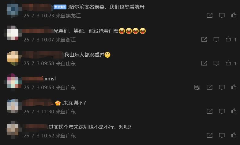 內地網友直呼羨慕,多個廣東IP的網友呼籲航母「拐彎」順便來深圳。
