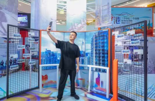 展覽以「澎湃都心 錨定未來」為設計理念,通過「封面時刻」、「巨輪出海」、「亮劍香港」等亮點區域,生動展現香港的硬核實力與城市活力。展覽現場,觀眾可登上「雲端觀光梯」體驗「向上人生」,感受香港摩天大樓的震撼視野;亦可手握船舵,參與「擊浪到港」互動,駕駛虛擬巨輪駛向維港,深入了解香港作為國際航運中心的優勢;「時空之門」互動裝置讓觀眾身處內地與香港青年共話香江情誼、領略香港城市風貌、掌握最新政策資訊。