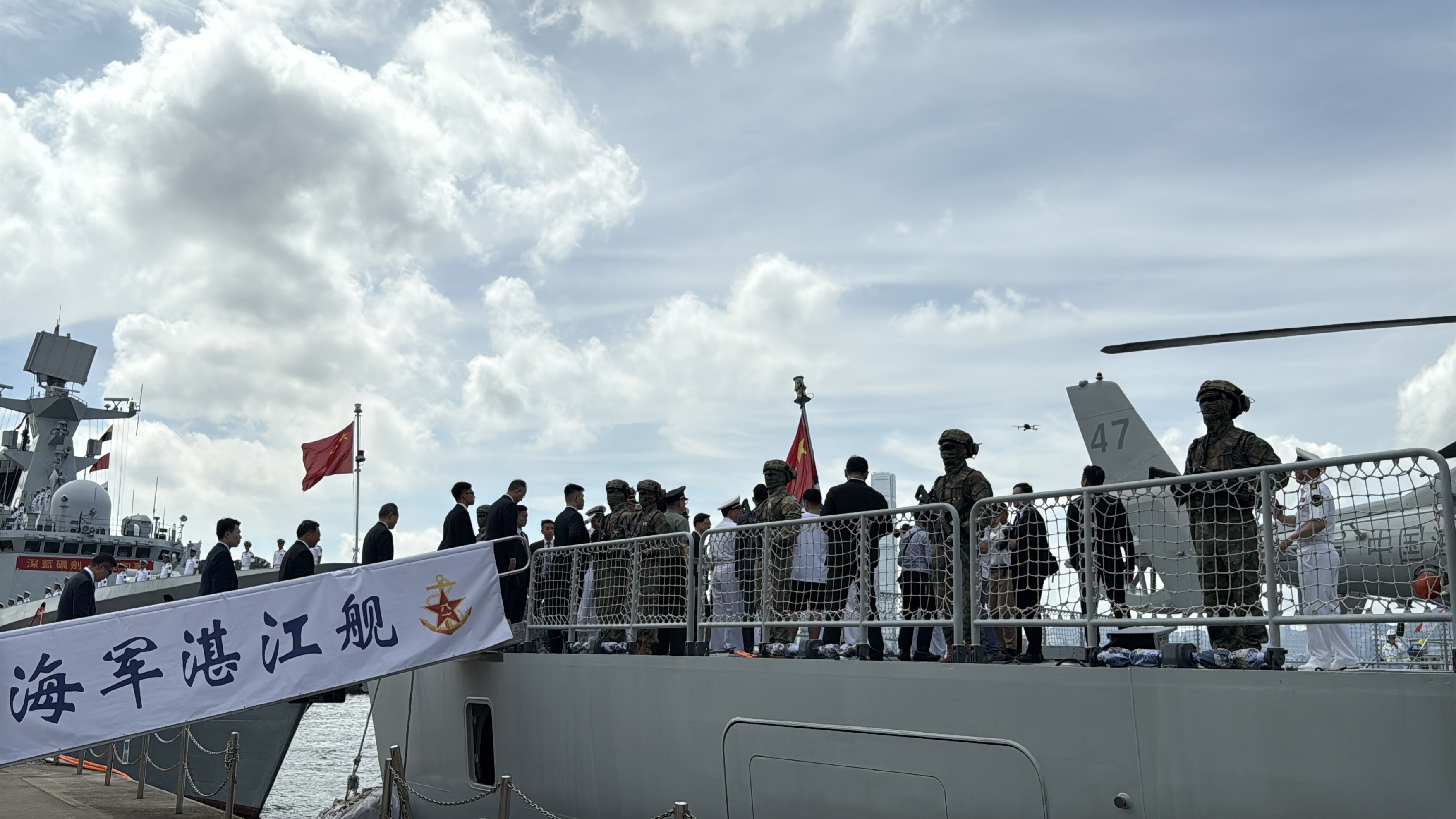李家超隨後登上導彈驅逐艦湛江艦,參觀約20分鐘。