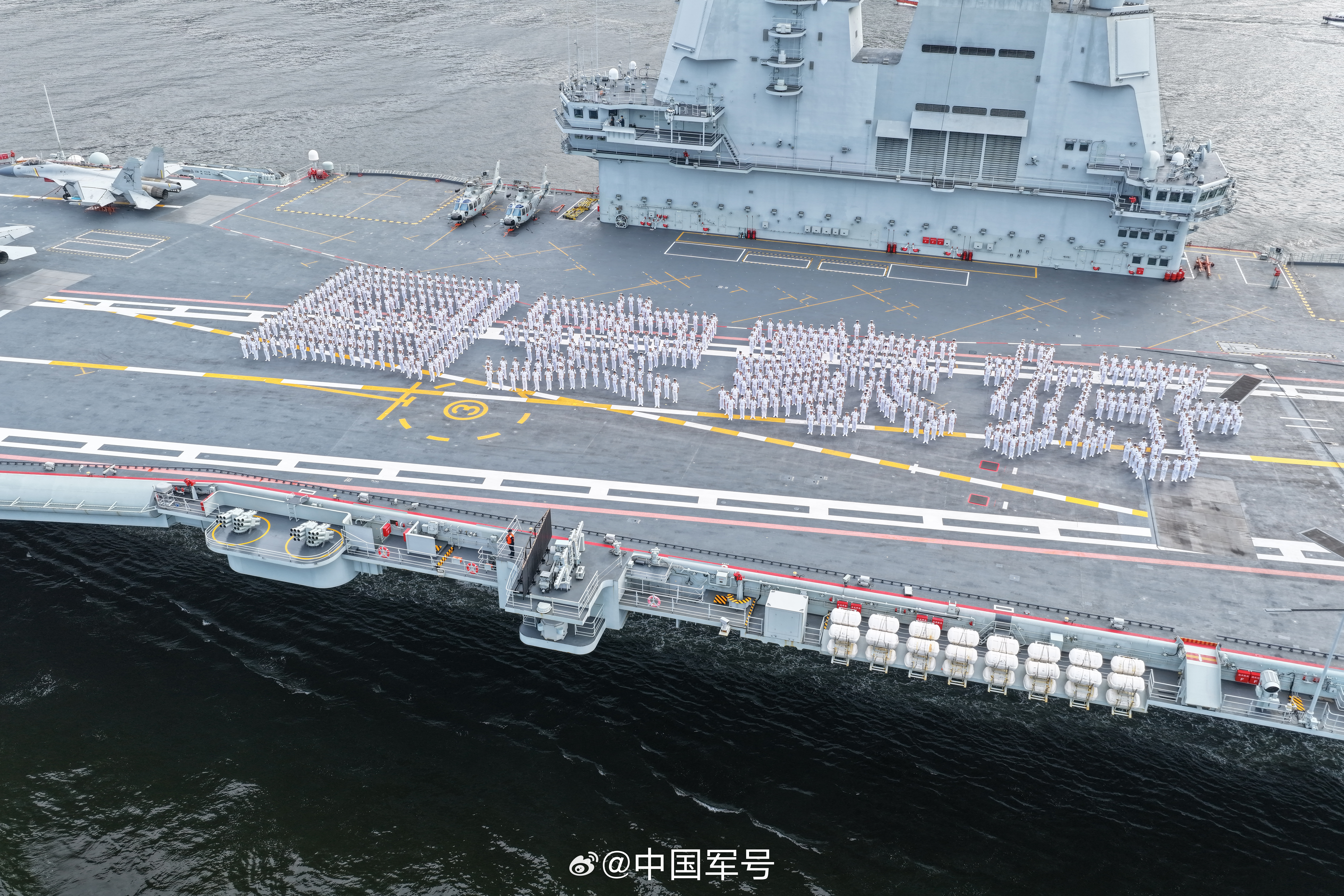 「中國軍號」微博賬號公布短片,由劉德華《中國人》配曲,以延時攝影方式記錄山東艦官兵如何排列出「國安家好」4個大字的全過程。