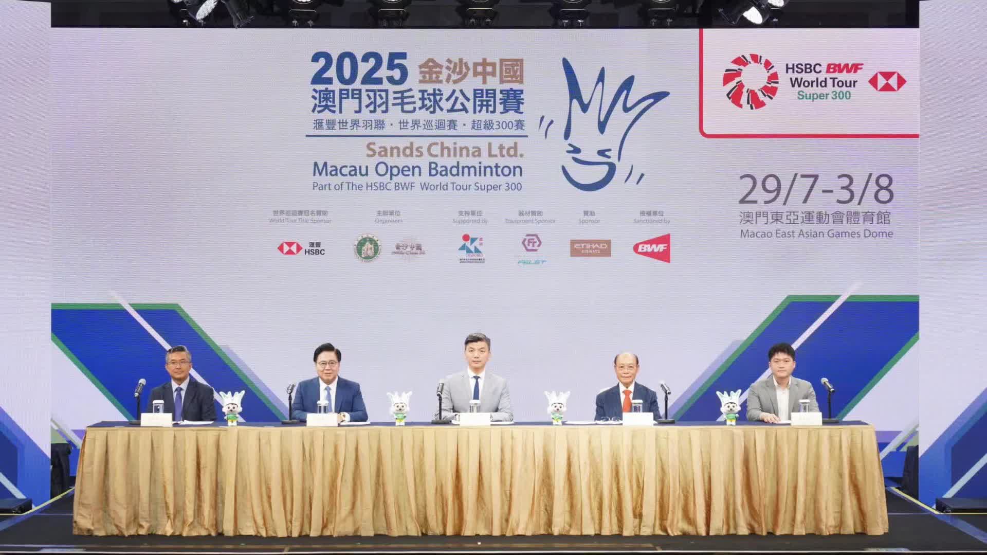 由金沙中國與澳門羽毛球總會合辦的「金沙中國澳門羽毛球公開賽」將於2025年7月29日至8月3日在澳門東亞運動會體育館舉行。是次賽事屬滙豐世界羽聯•世界巡迴賽超級300賽級別的年度賽事,今年將進行五個項目,包括男子單打、女子單打、男子雙打、女子雙打及混合雙打;總獎金亦調升至37萬美元(約300萬澳門元)。