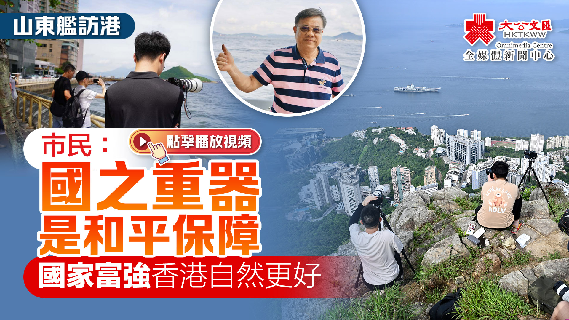 (大公文匯全媒體記者 周傾芫)今早(7月3日),由我國首艘國產航母山東艦、導彈驅逐艦延安艦、湛江艦以及導彈護衛艦運城艦組成的海軍艦艇編隊,經東博寮海峽緩緩駛入香港水域,展開為期5天的訪問行程。清晨7時許,一眾市民已聚集在堅尼地城海旁,翹首期盼這一歷史性時刻。