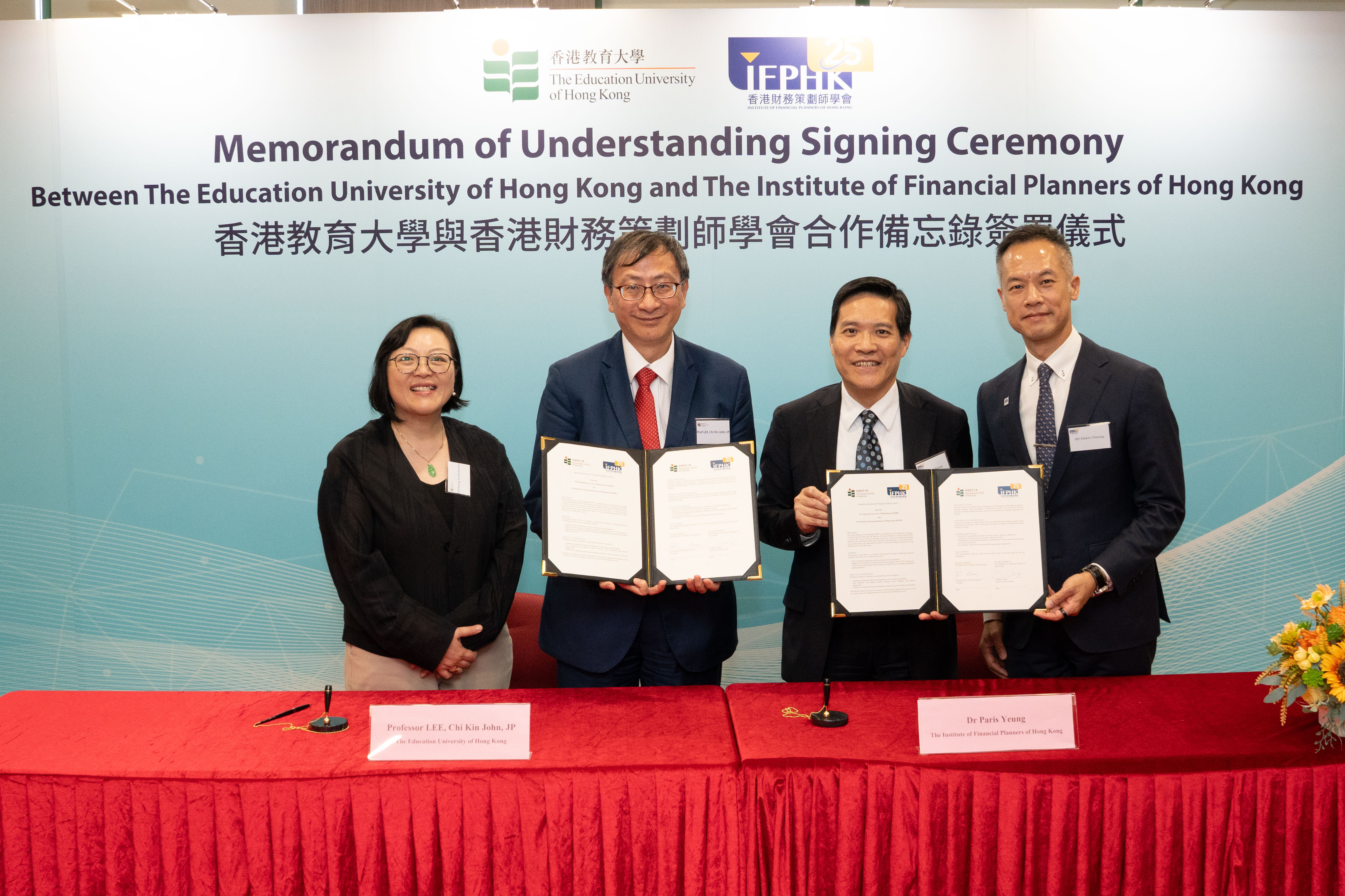 香港教育大學(教大)與香港財務策劃師學會(IFPHK)7月2日簽署合作備忘錄,開展為期三年的合作計劃。雙方將共同推動財務策劃專業的卓越發展,透過學術與業界資源的整合,提升從業人員的專業標準。同時將拓展CFP®資格認證教育途徑,支持多元化資格認證與培訓框架之外,亦將深化產學研協作與建立長期夥伴關係,以回應行業發展需求,攜手為行業注入新動力。