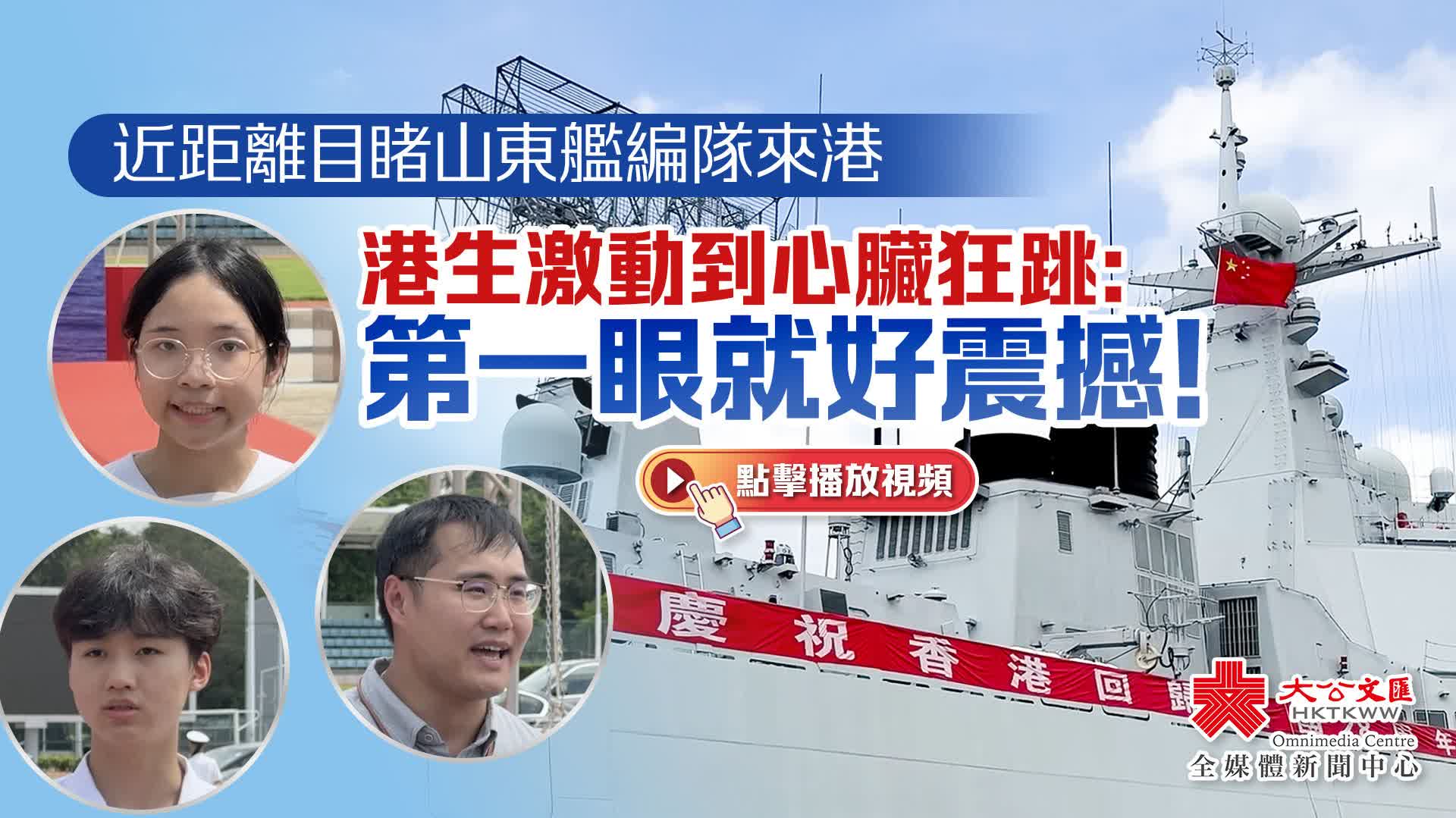 大公文匯全媒體報道,今(3日)早,由航空母艦山東艦,導彈驅逐艦延安艦、湛江艦,導彈護衛艦運城艦組成的海軍艦艇編隊,經東博寮海峽進入香港水域,開啟一連五日訪港行程。湛江艦、運城艦停靠昂船洲軍港期間,艦上官兵向碼頭人群揮手致意,前來迎接的香港學生亦熱情揮舞國旗及區旗,歡迎「國之重器」訪港。