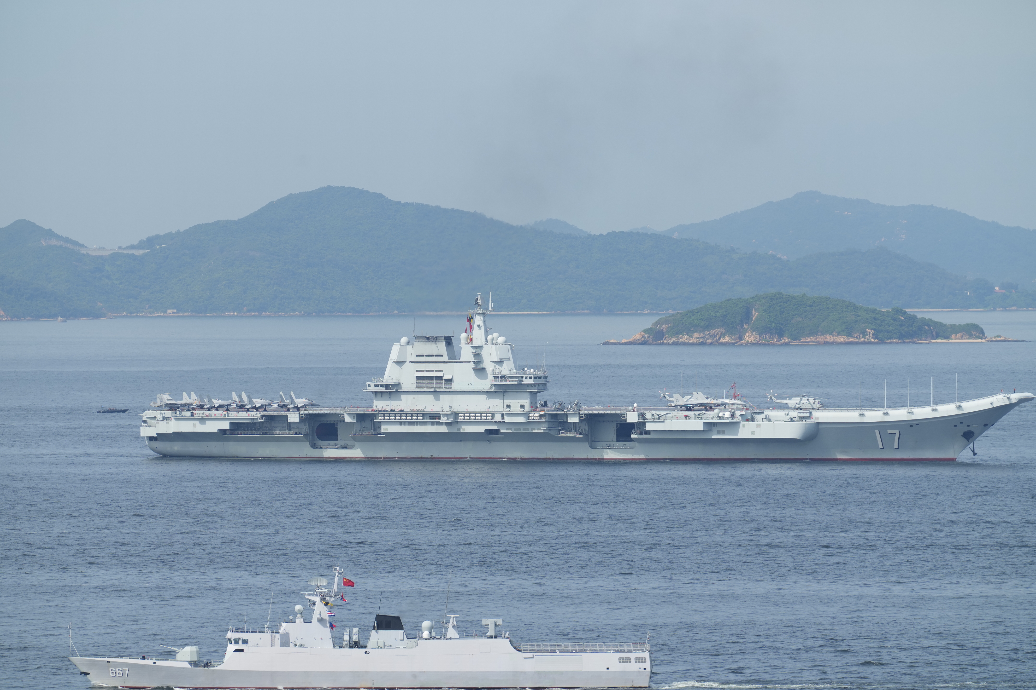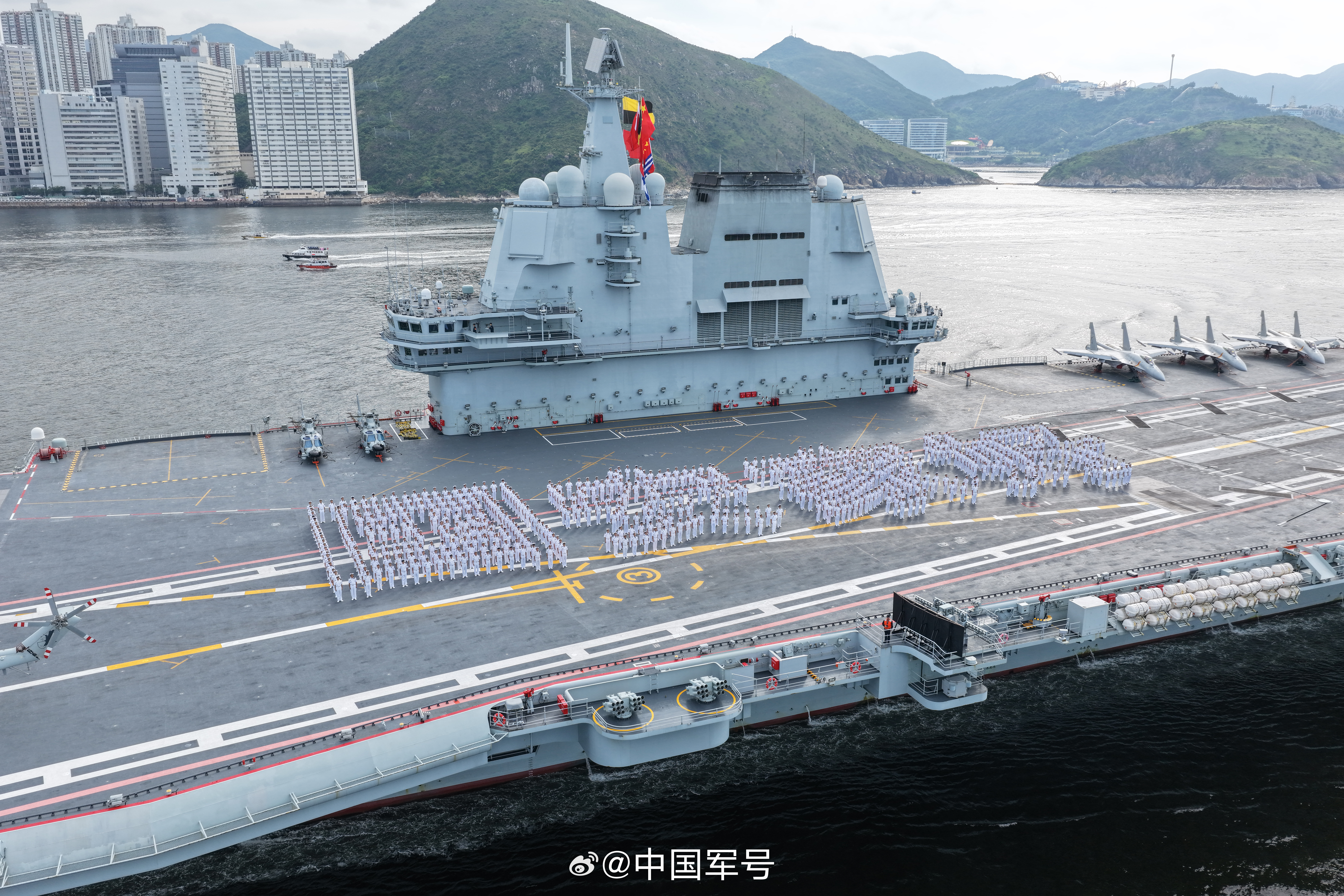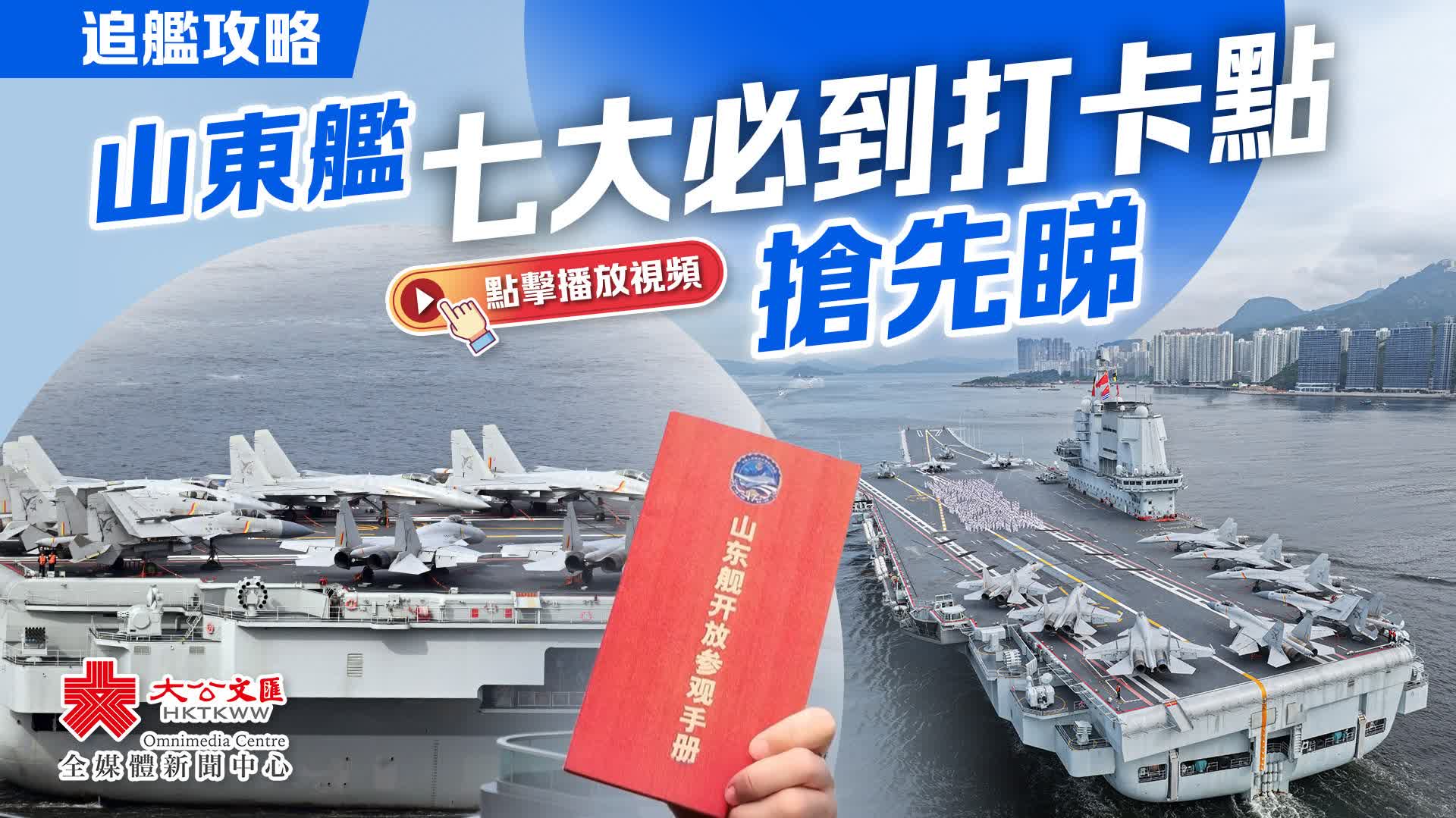 大公文匯全媒體報道,今早(7月3日),航空母艦山東艦停泊於港島西面2號錨地,艦艏面向青衣西南方位。泊港期間,山東艦將首次開放參觀飛行甲板艦載機,經過多輪「搶票」,10000張參觀票已經全部放出。