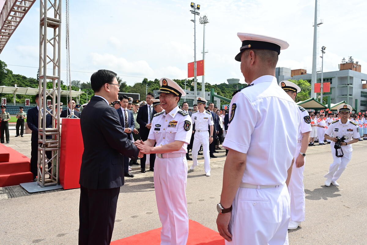 李家超指出,編隊訪港代表國防護航高質量發展,國家安全固若金湯。編隊精良的科技建設,彰顯國家在前沿科技的突破發展,以新時代國防和軍隊建設捍衞領海,對國家的貿易和航運發展作出重要貢獻,維護國家主權、安全、發展利益。