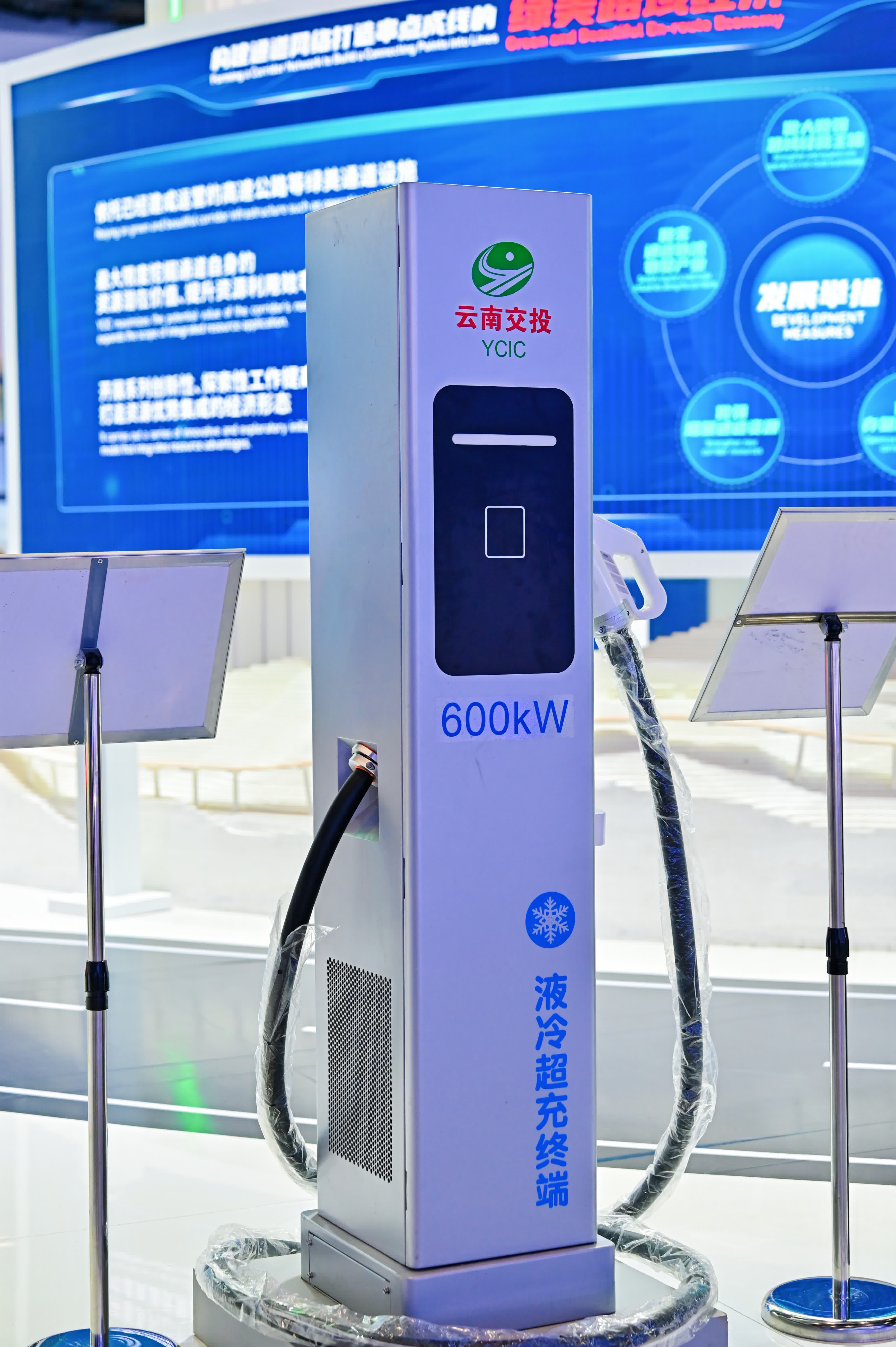 展台工作人員告訴記者,本次展會上,雲南交投集團集中展示了「交通+文旅」「交通+物流」「交通+能源」「交通+數字」融合發展方面取得的新成效,以及智慧交通建設系列產品、技術和解決方案。雲南交投智算中心通用算力達4.5萬核、AI算力達100P、綜合存儲能力達10PB,實現了從芯片到應用全棧自主可控,可支撐交通行業百億參數大模型訓練,算力集群達到雲南省屬企業第一、全國交通投資類企業第一。公司自主研發的液冷超充樁,採用 SiC 模塊與智能功率分配技術,轉換效率超95.5%,峰值功率達 600 千瓦, 6 分鐘即可為電動車補能 200 公里。