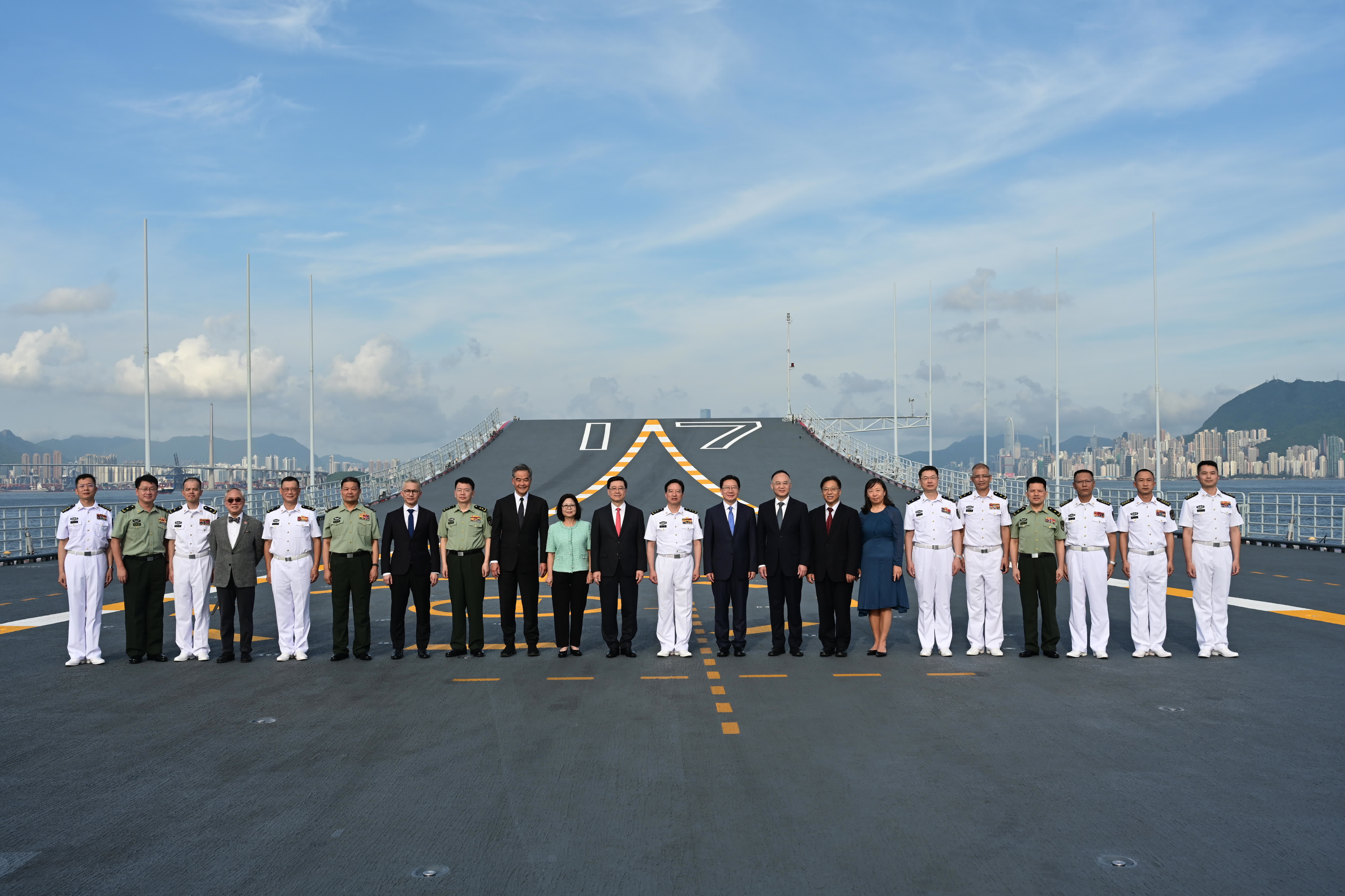 據新華社報道,海軍山東艦航母編隊3日上午順利抵達香港,開啟為期5天的訪問活動。3日晚,編隊在山東艦上舉行甲板招待會。香港特別行政區行政長官李家超,全國政協副主席梁振英,中央港澳辦、中央駐港駐澳機構有關負責人,香港、澳門特別行政區政府部分官員和各界愛國人士代表應邀出席。