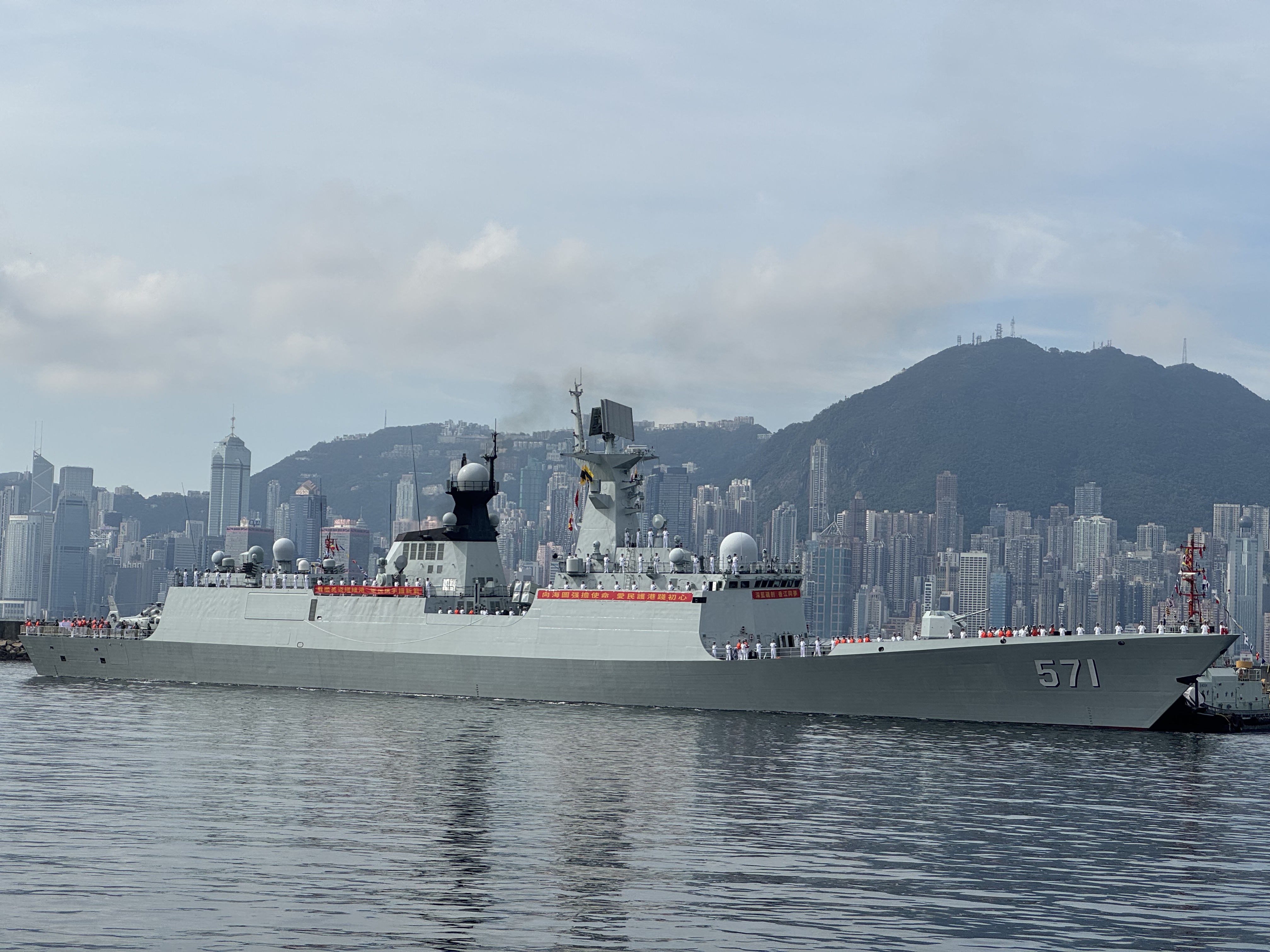 但榮幸也遮蓋不住我的手因激動而顫抖——確實真的是「手抖」。在看到運城艦、湛江艦駛入昂船洲軍營碼頭的那一刻,那個雄壯威武的氣勢,直撲我來,感覺它們是那樣的高大,在它們的面前我又是這樣的渺小。但是很快你就會感到一種巨大的、莫名的安全感,我想,是因為它們是我們國家的軍艦啊!