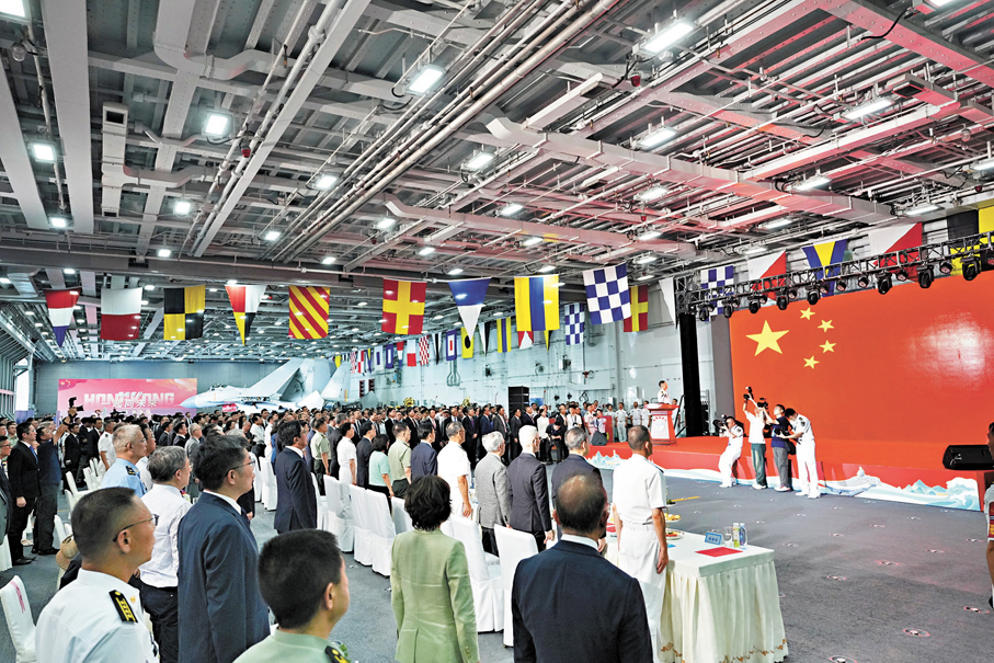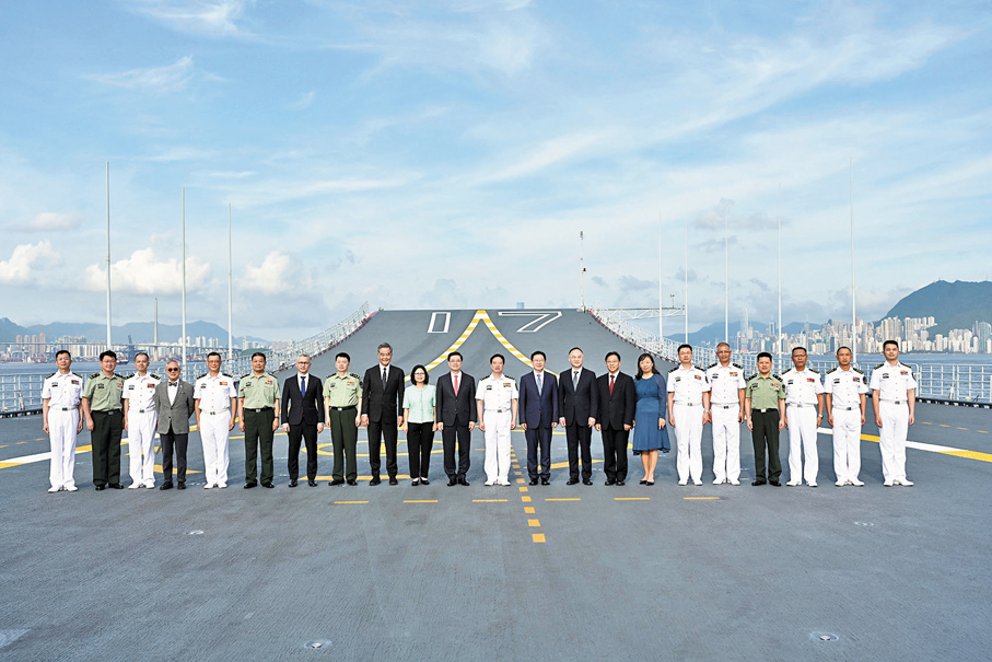 海軍山東艦航母編隊昨日抵達香港,展開為期5天的訪問。對被譽為「國之重器」的國產航母訪港,一眾參加歡迎儀式、甲板招待會的香港各界人士昨日分享了他們參觀艦艇的感受,並大讚艦艇編隊訪港展現國家軍事現代化成就,更凝聚了港人的愛國情懷。