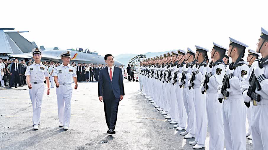 第三,彰顯國防力量自立自信,強國建設乘風破浪。最近,山東艦和遼寧艦兩個航母編隊,遠赴西太平洋開展訓練,以「雙航母」姿態到遠洋訓練獨立作戰的能力,充分展示了中國人民解放軍「威武文明之師」的風采。香港是一個國際大都會,在世界舞台上,不斷綻放光芒。多年來,不論是解放軍駐港部隊的堅定守護,還是海軍現代化艦隊的親切訪港,都使東方之珠更放異彩,彰顯國家協助維持世界和地區安全和平的能力和決心,讓香港在「一國兩制」下,為強國建設作出貢獻。
