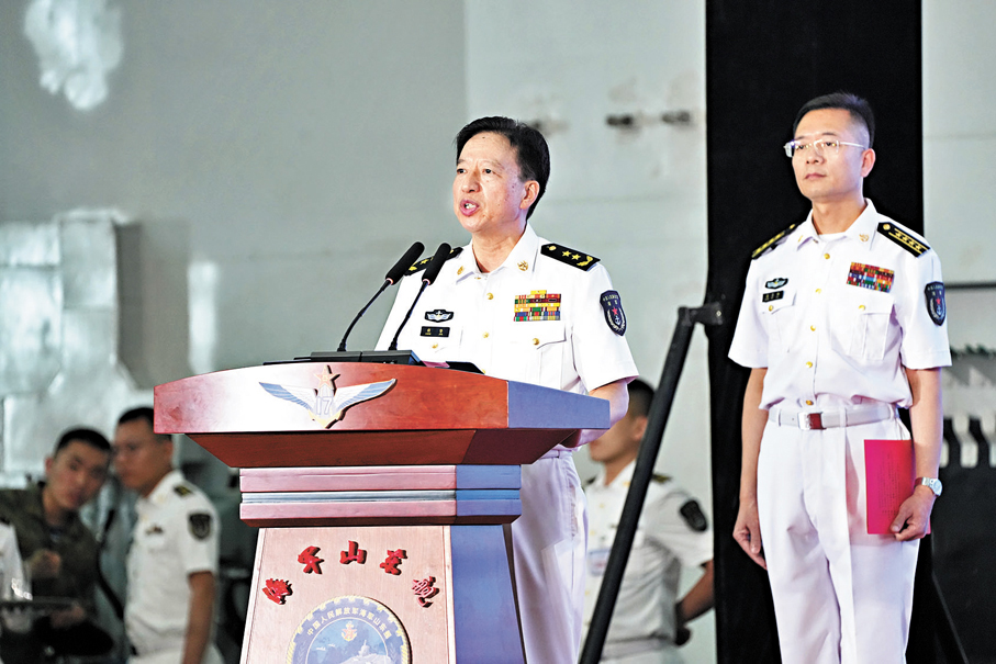 海軍副政治委員程堅中將致辭,向關心支持國防和軍隊建設的香港各界人士表示歡迎和問候,介紹山東艦航母編隊此次訪問香港的重要意義,並讚揚香港各項事業取得的發展進步,表達人民海軍對香港繁榮穩定的堅定支持。