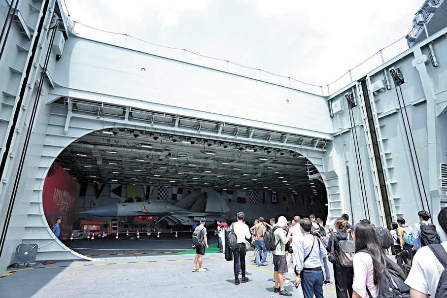 「國家的國防發展一日千里,我深受感動,更為祖國自豪!」特區政府政務司副司長卓永興昨日在社交平台發帖表示,他們在山東艦的甲板上參觀了滑躍甲板、攔阻索、直系直升機,還有殲-15T戰機。「在慶祝香港回歸祖國28周年及抗戰勝利80周年之際,國產航母的『真身』在香港展現於世界面前,意義非凡。讓市民親眼見證國家強大的軍事實力、感受國家的眷顧,大大地增強國家觀念和民族自豪感,肯定是最好不過的愛國主義教育和國防教育!」