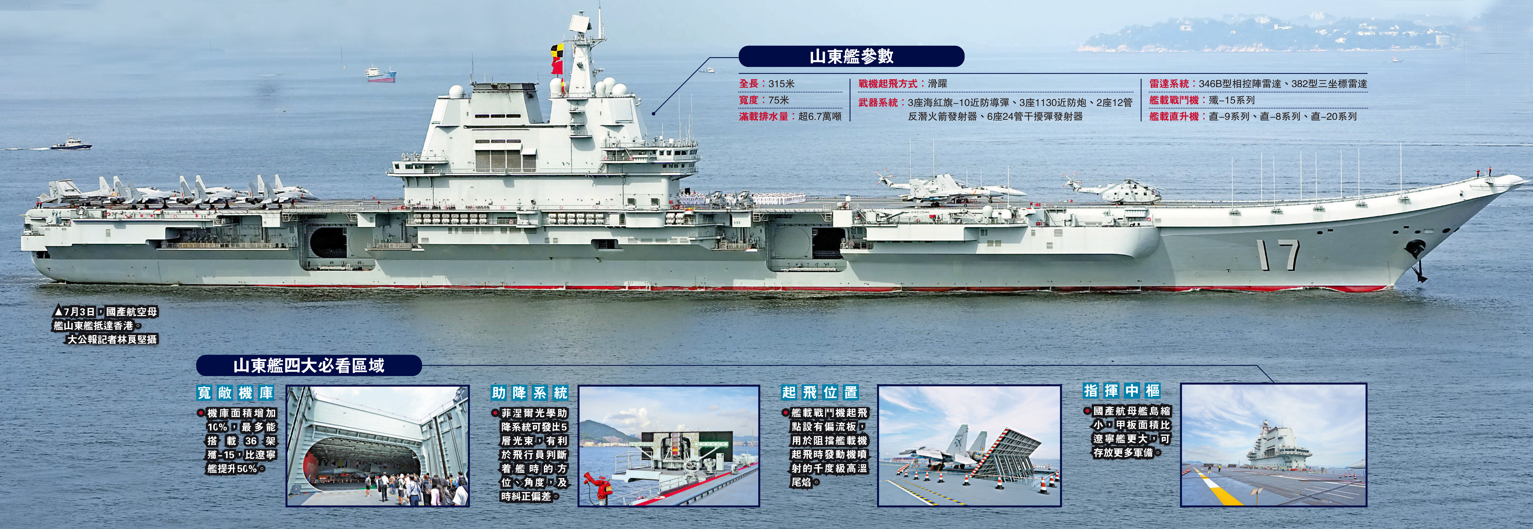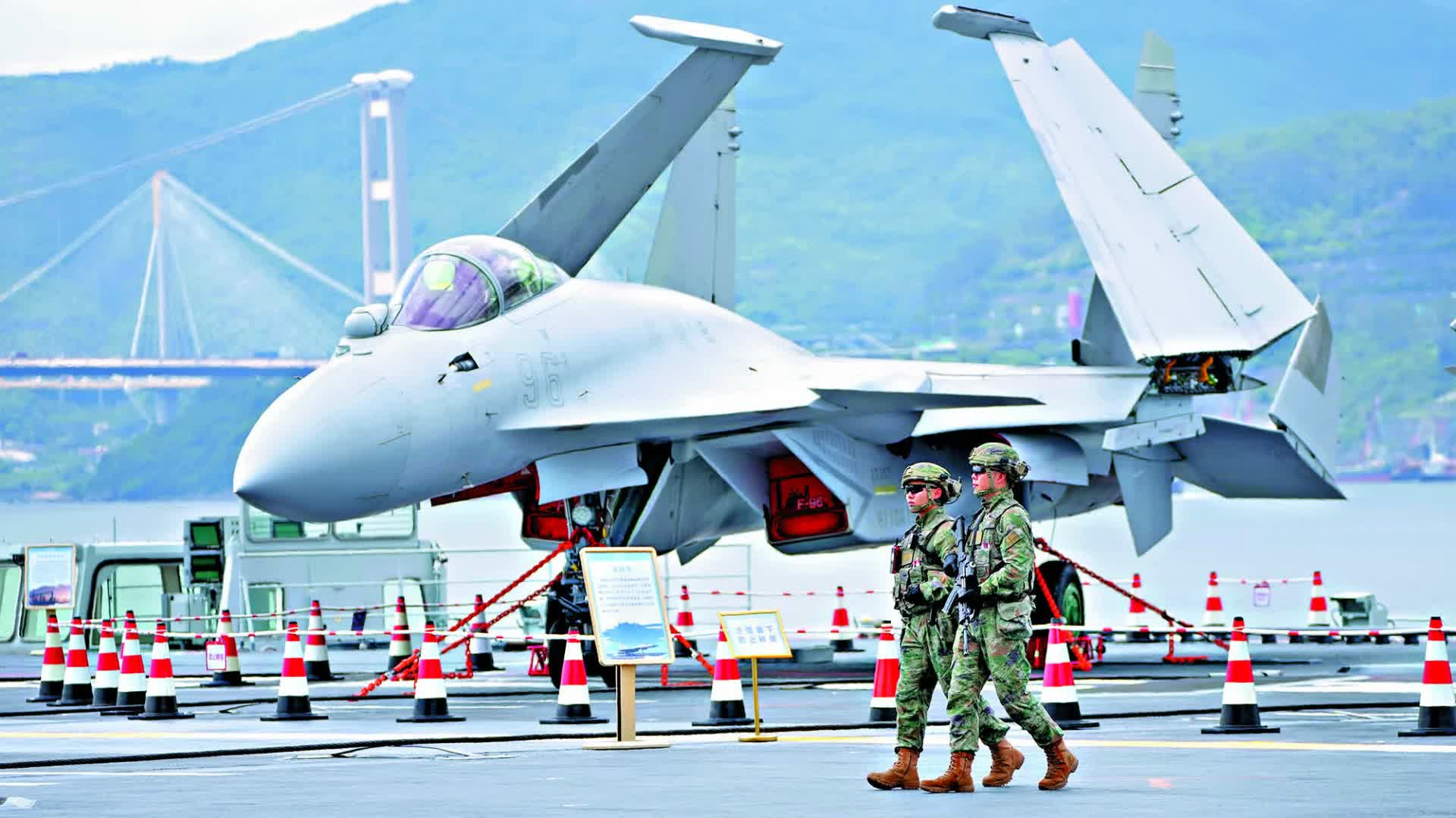 深藍礪劍,香江同夢。國產航母山東艦首次在香港舉行公眾開放,基礎款殲-15和彈射型殲-15T兩型「飛鯊」艦載戰鬥機,亦在航母甲板上首次對公眾亮相。