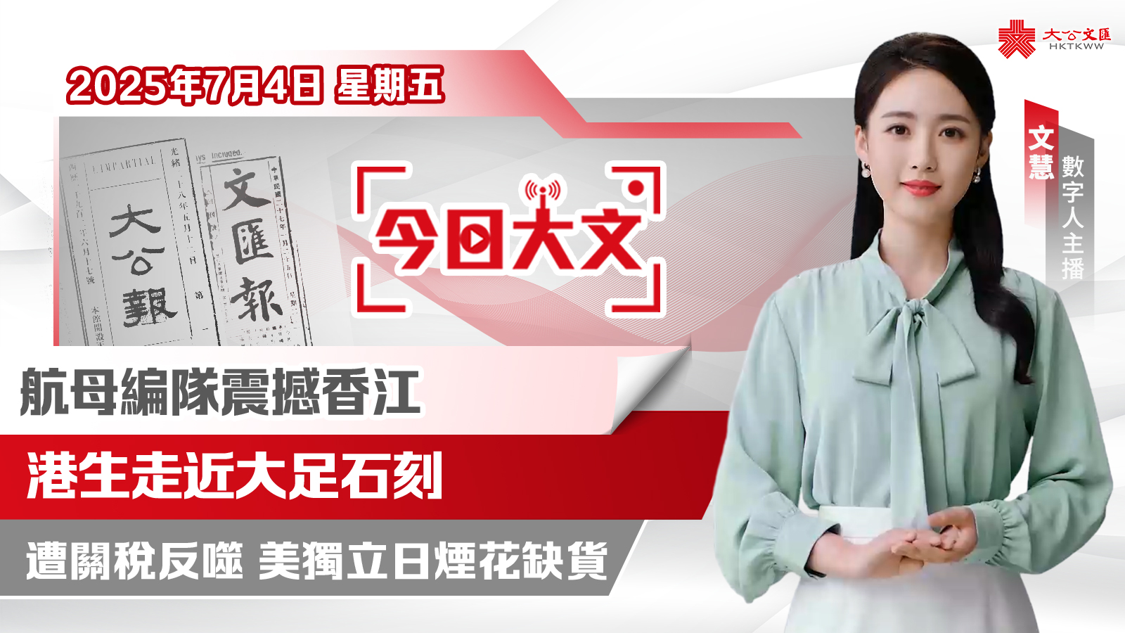 今天是2025年7月4日(星期五),大公文匯網與您速覽報紙看點。