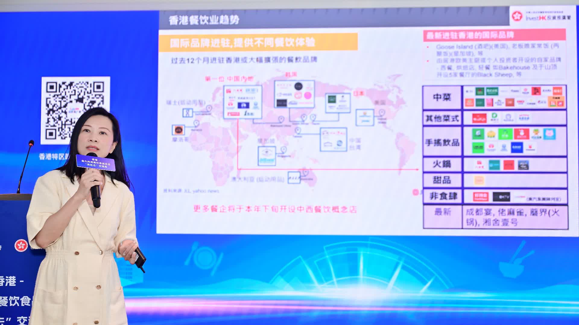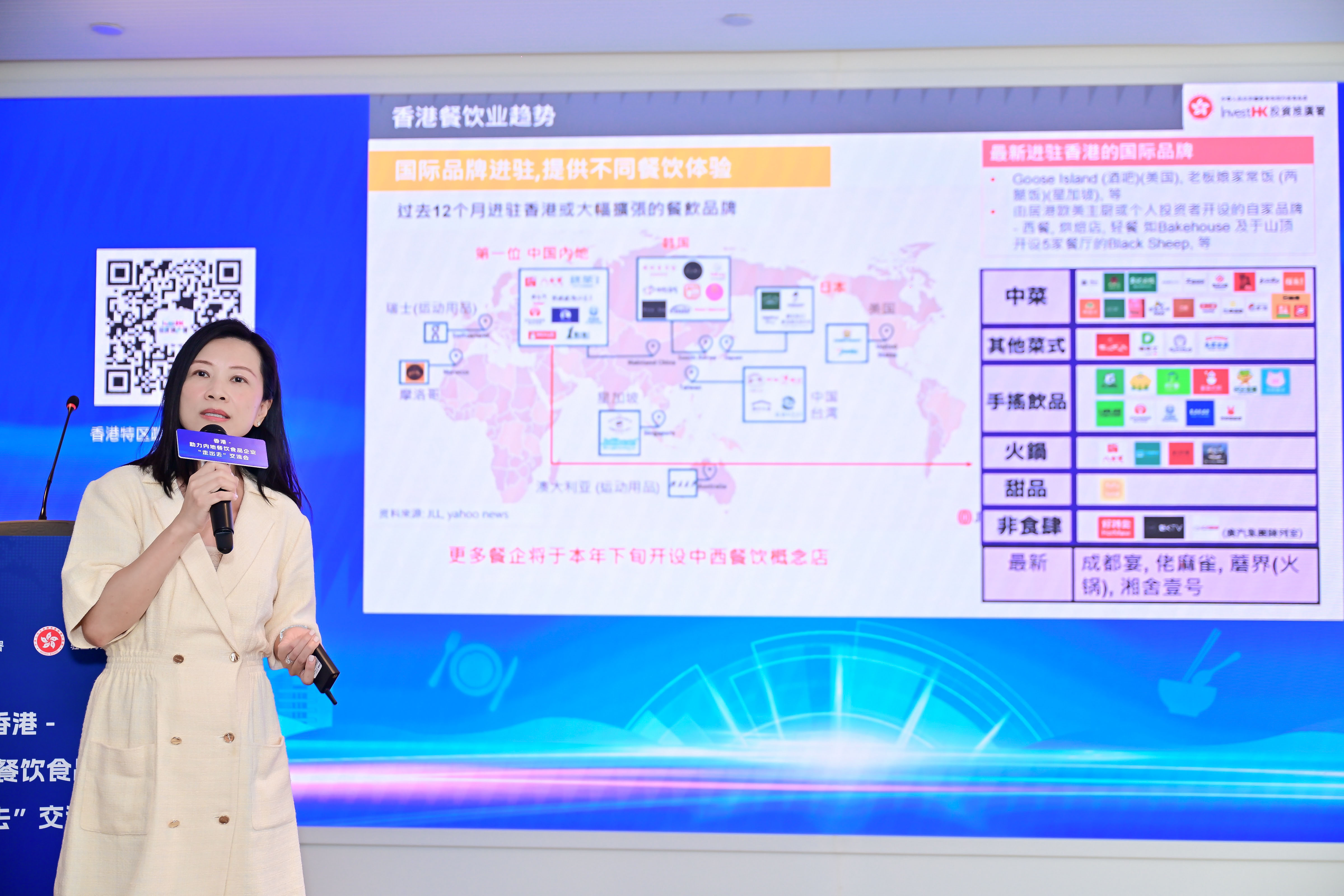 香港特區政府投資推廣署旅遊及款待總裁黃思敏就香港的營商優勢、政策新機遇、香港餐飲業市場環境和實戰案例等,向當地餐飲及食品企業及傳媒作詳細講解。在接受記者採訪時她表示:「當前香港市場既歡迎大眾化的外賣品牌,也對高端餐飲有需求。內地企業在開拓香港市場前,建議盡早與投資推廣署溝通,以便精準匹配目標客群、商業區域與合作夥伴,從而有效控制成本、提升成功率。」