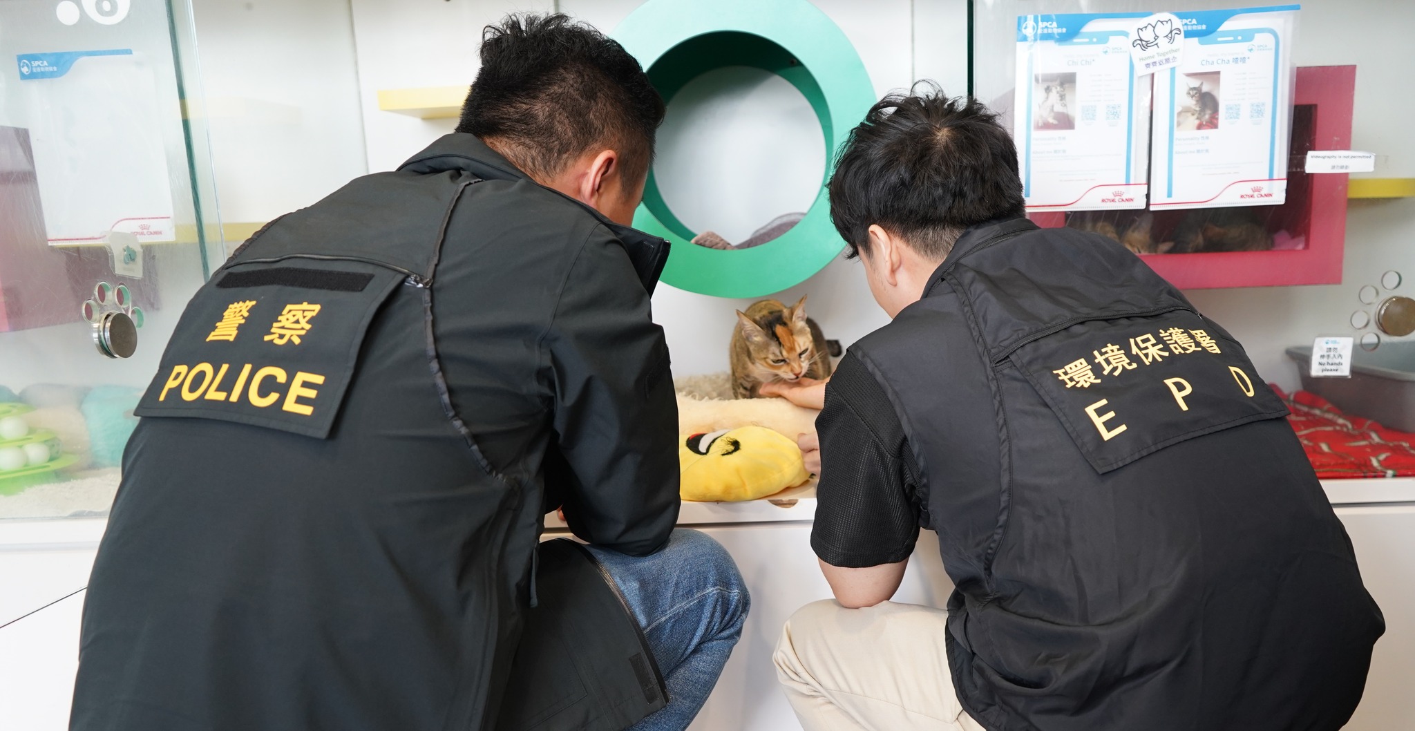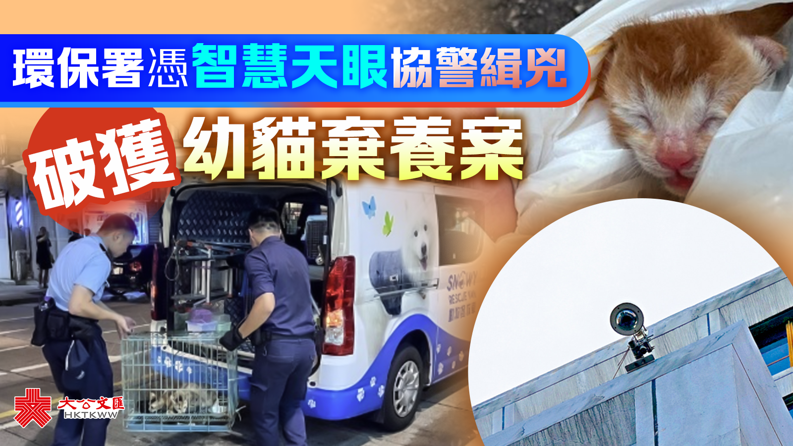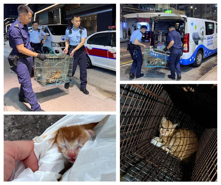 今年5月初,深水埗天后廟附近發生一宗棄養幼貓事件。天后廟對開一個大垃圾桶傳出幼貓叫聲。警方到場後發現一群只有數日大的幼貓,被塞入膠袋遺棄於垃圾桶的紙箱內,情況令人非常痛心。幸好,環保署在附近設置了「天眼」,並將相關監控情報轉交警方跟進,警方火速鎖定線索並於晚上閃電拘捕疑犯,在被捕人屋內再檢取貓隻。香港愛護動物協會即時收留及照料貓貓,讓牠們重獲新生。最近,環保署與警方一同前往愛協探望其中一隻獲救的貓貓。經悉心照料兩個月後,現時貓貓健康又活潑,亦已順利找到善心人領養。