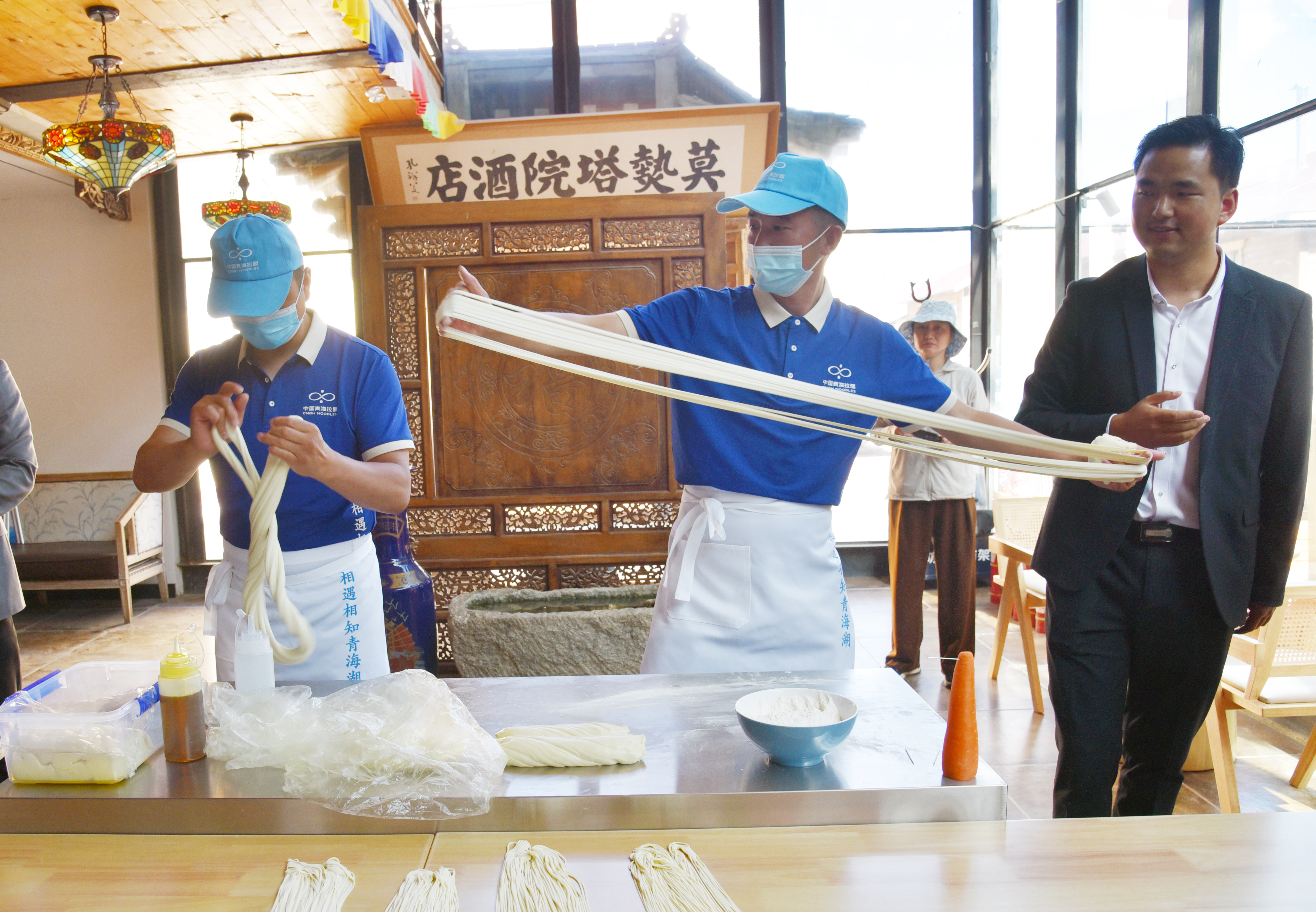 (大公文匯網記者 李陽波 青海報道)近日新東方董事長俞敏洪騎行青海湖的話題登上熱搜,他在社交媒體平台上發文說:四天騎行370公里,海拔平均3200米,爬升3500米,遇到了風雨雪、摔傷,朋友們互相鼓勵完成環青海湖騎行。「以後來青海環湖騎行可能會輕鬆點了,累了就停下來在湖邊來碗拉麵,靠在沙發上小憩一會,體驗一下唐卡繪製和藏香製作,精神抖擻再出發……」6月29日,位於青海省海南州共和縣莫熱村青海湖岸的中國青海拉麵店正式開門迎客,不僅為環青海湖騎行愛好者提供了一個沿途修整的溫馨驛站,同時也全面開啟了青海「拉麵+環湖騎行」新業態。青海省拉麵產業行業協會會長馬麗萍告訴記者,目前該協會已經在香港開始選址,年底青海拉麵首店有望登陸香港。