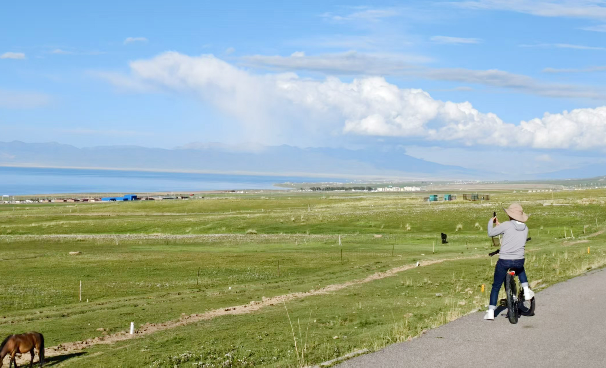 「碧波蕩漾的湖水、一望無際的草地、金燦燦的油菜花,還有成群的牛羊,騎着單車一瞬間好像就『扎進』了童話世界。」趁着孩子放假來青海湖放鬆的機會,來自上海的王女士已經在莫熱村逗留了兩天。「真是捨不得走,剛來那天的驚喜是景色,昨天的驚喜是當地民眾送上的酥油茶,今天的驚喜則是拉麵。」在接受記者採訪時,遊客王女士表示,在青海湖的每一天都有驚喜。「沿着湖岸在湖天一色間自由穿梭十餘公里,然後在拉麵店吃上一碗熱乎乎、色香味俱全的拉麵,再去湖邊草地上或躺或臥。淡淡的草香,眼前的湖光一色,原處的山巒,真是一種無以倫比的享受。」王女士笑稱,如果不是要工作,真希望在這裏待上一輩子。