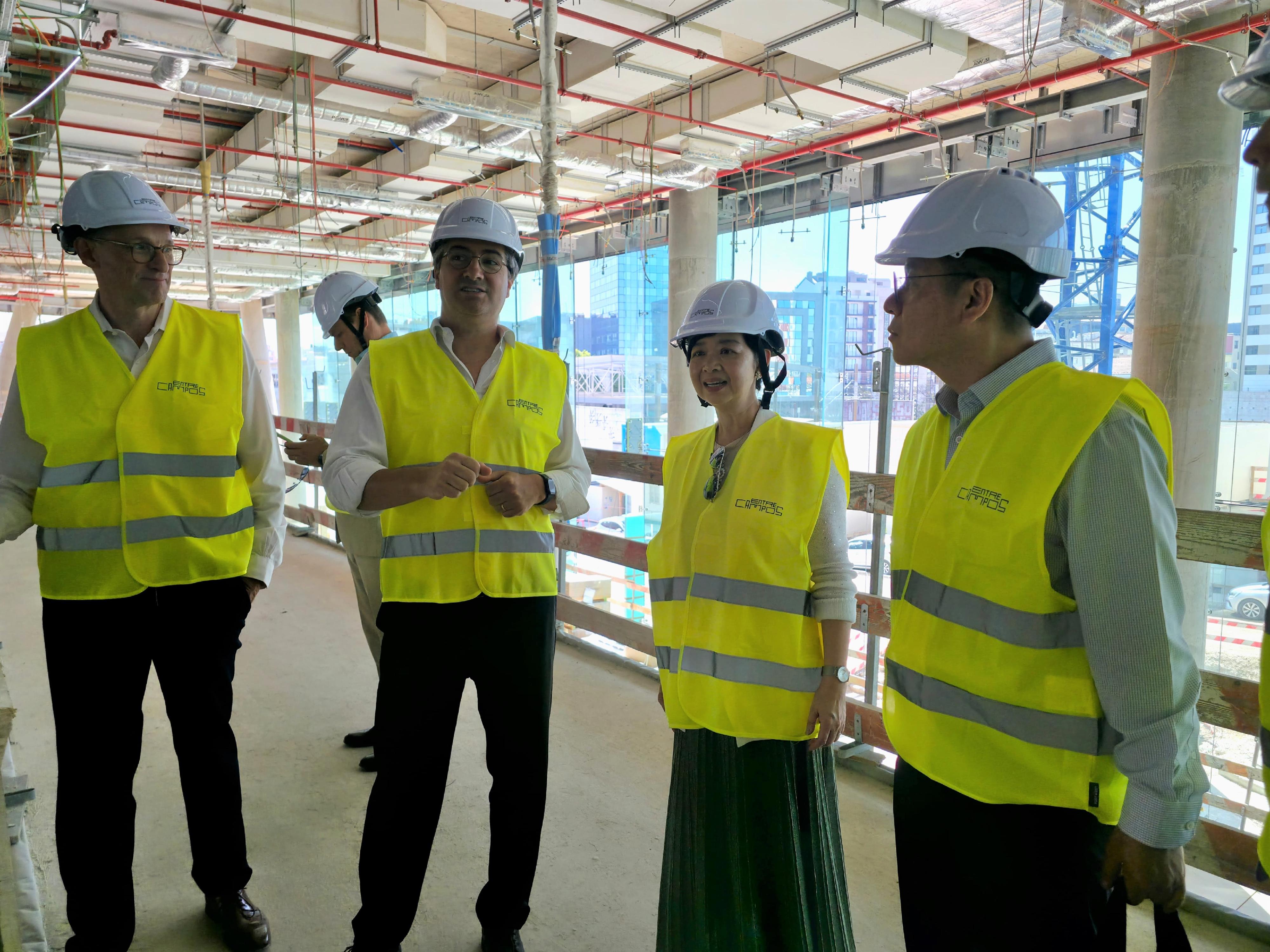 此外,何永賢早上參觀當地一個由公私營合作發展,包含以中產住戶為對象的社會房屋、辦公室、零售、社區設施和綠化空間的重建項目EntreCampos,項目興建過程中採用建築信息模擬技術(BIM)。何永賢指,房委會一直致力於推動更環保、更節能的設計,所有新項目均以「綠建環評」的「金級」或以上評級為目標,措施包括在建築過程中運用MiC,在廠房更精準、高效地生產組件;利用BIM等創新科技協助施工規劃及優化管理,從而節能減廢,令工程更環保。