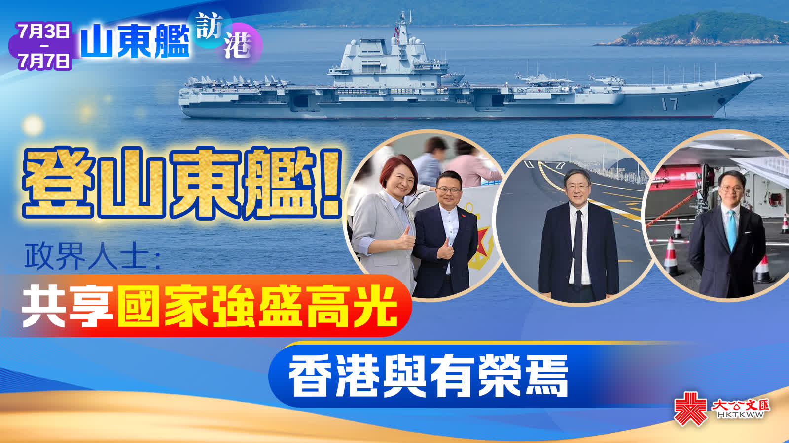大公文匯全媒體報道,為慶祝香港回歸祖國28周年,航空母艦山東艦編隊7月3日起,一連五日訪港。本港許多政商界人士登上山東艦參觀後,紛紛盛讚祖國繁榮強盛。