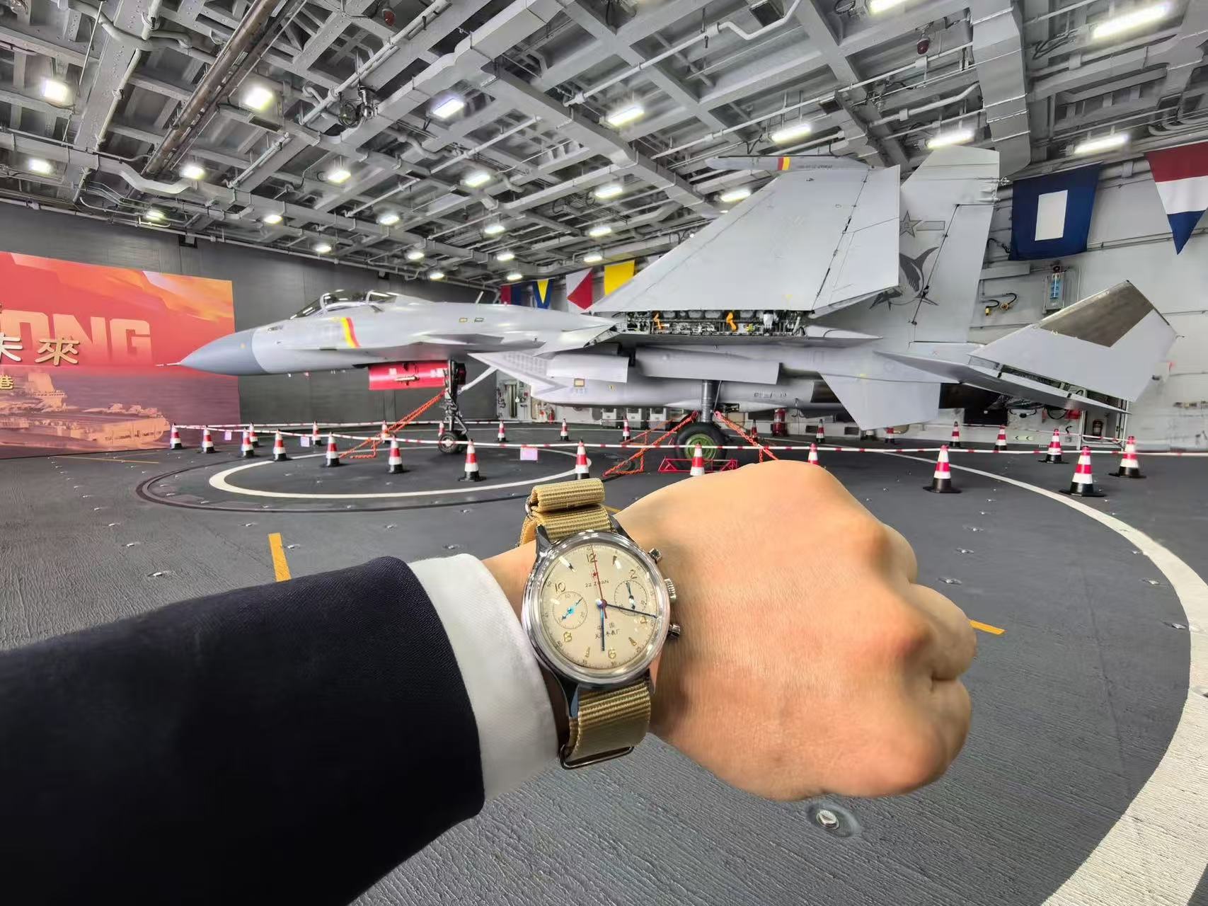 陳克勤通過眼前由國家自主研發和建造的種種先進武器,想起了戴在手上的中國空軍第一支計時手錶復刻版。他指出,在一窮二白、技術封鎖的年代,這塊手錶同樣是一批為國奮鬥者不懈努力的見證,是代表着同樣可貴的自主創新精神與攻堅克難的決心。