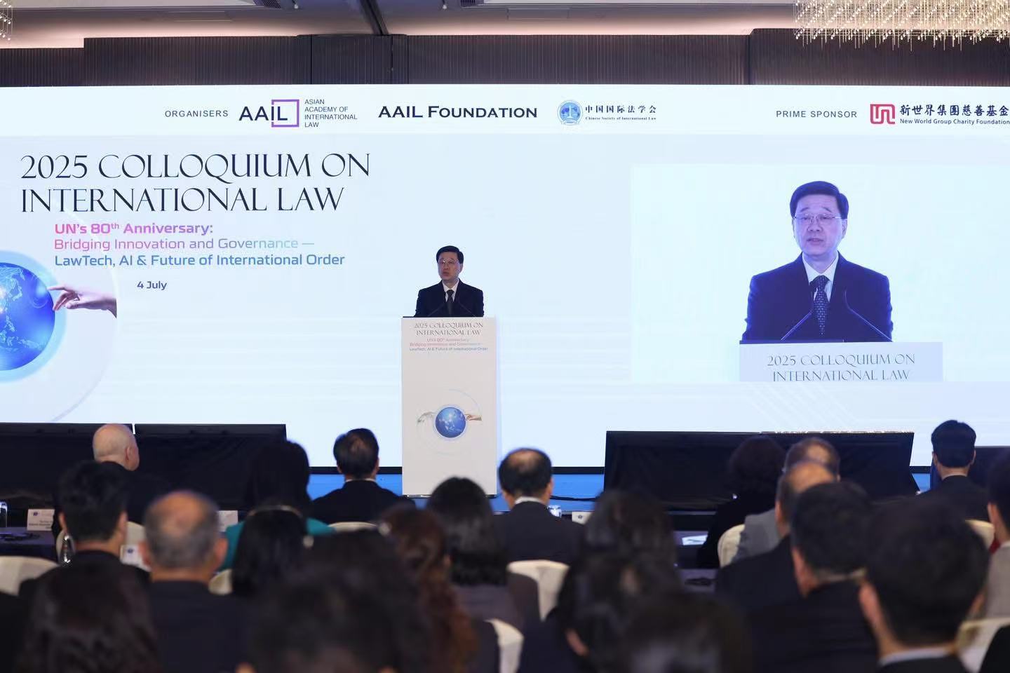 大公文匯全媒體報道,行政長官李家超今日(4日)出席2025年國際法論壇,他指出,今年論壇聚焦兩大關鍵主題,聯合國成立80周年,以及法律科技、人工智能與國際秩序的未來,以設立創新與治理的橋樑。