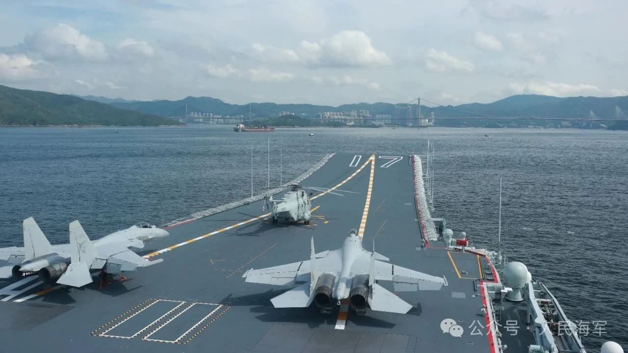下午5時許,李家超和特區政府各部門官員,中央港澳辦、中央駐港駐澳機構、南部戰區、駐香港部隊、駐澳門部隊代表登上山東艦。山東艦值更士兵吹響海軍笛。寬敞的飛行甲板上,12架殲-15型艦載戰鬥機和直-18、直-9型艦載直升機排列整齊。接下來的幾天,香港市民有機會登上山東艦,與這些國產艦載戰鬥機、直升機合影打卡,還可以在機庫中親手觸摸系列現役輕武器。