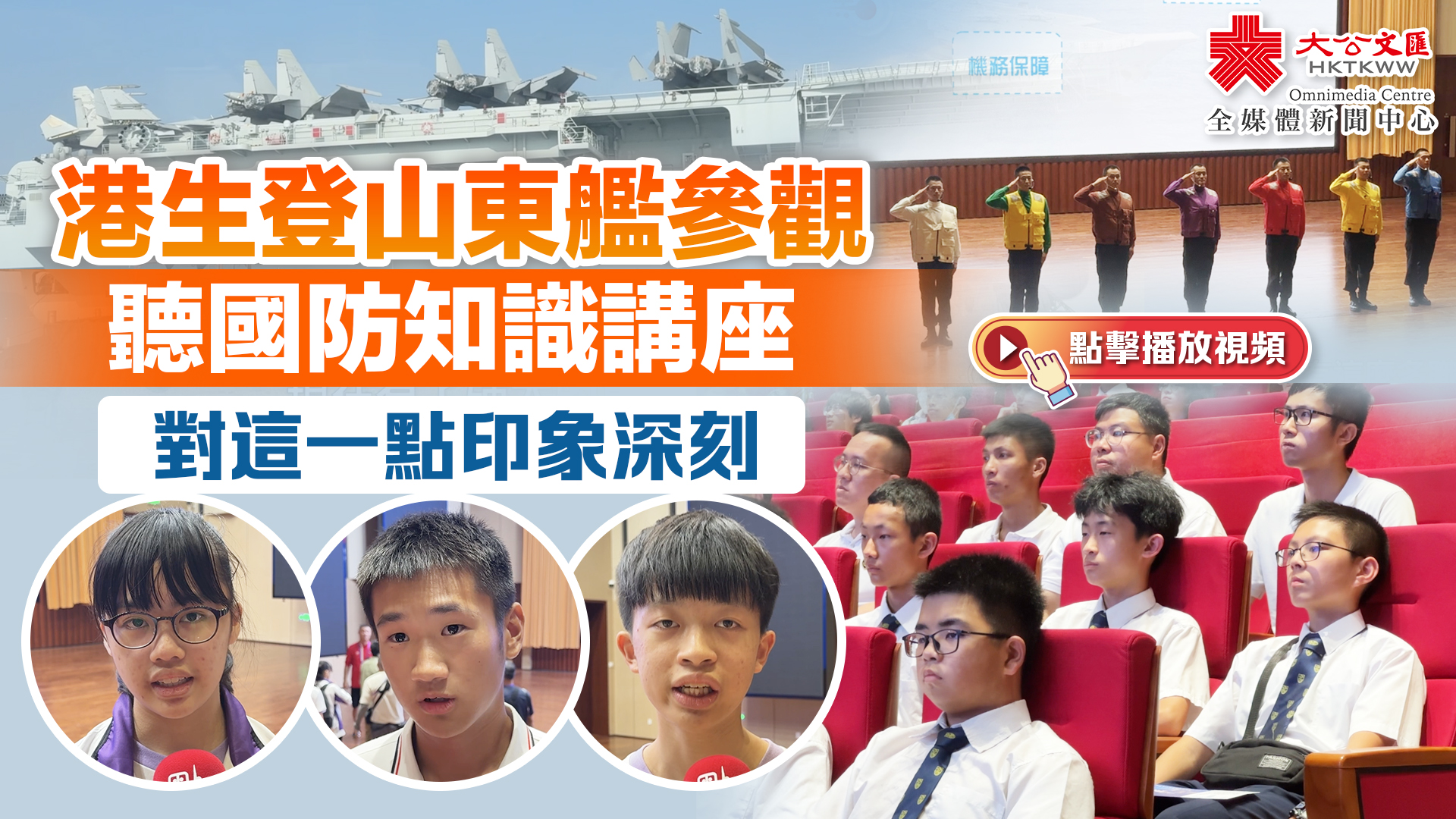 大公文匯全媒體報道,為慶祝香港回歸祖國28周年,山東艦航母編隊自7月3日起一連五日訪港。今日(7月4日),山東艦開放予學生參觀,並舉行國防知識講座,吸引眾多學生參與,深入了解航母運作及國防知識,激發愛國情懷。