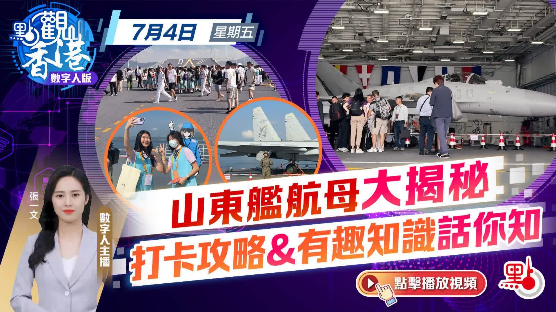 大公文匯全媒體報道,今天我們重點關注山東艦訪港。今年是香港回歸祖國28周年,為慶祝這一盛事,由航空母艦山東艦,導彈驅逐艦延安艦、湛江艦,導彈護衛艦運城艦組成的海軍艦艇編隊,昨日(3日)早上抵達香港,開啟一連5天的訪港活動。山東艦停泊於港島西面2號錨地,今日(4日)起面向學生等群體開放,讓香港青少年近距離感受新時代人民軍隊的建設發展成就。