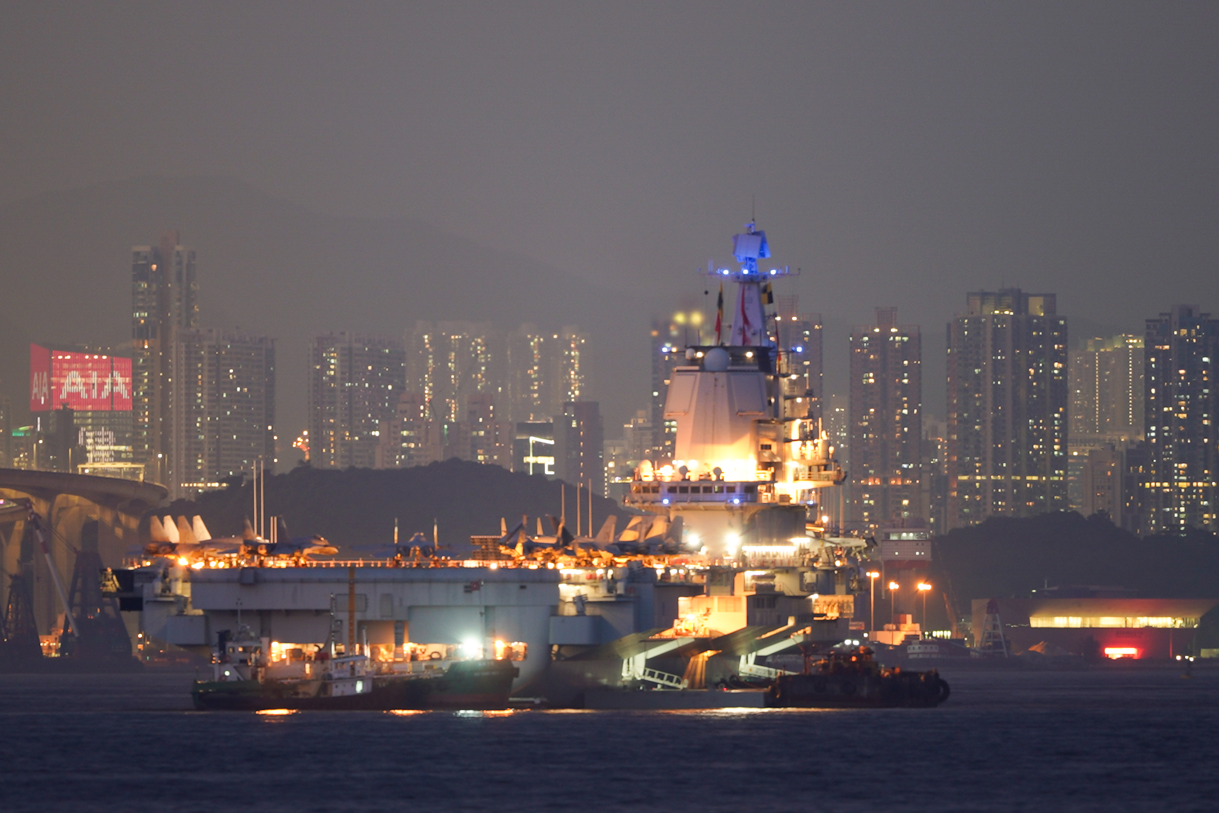此時可看到山東艦的完整輪廓,震撼的畫面不容錯過,抓緊時間拍照!